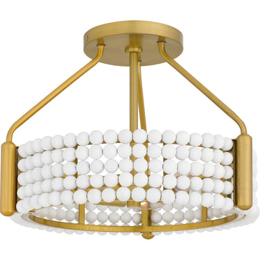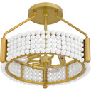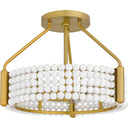 Molly combines a brushed gold finish with matte white beads for a pretty contrast. The white beads form an elevated version of a classic drum shade, adding a touch of coastal style to the simple design. Available as a semi-flush mount or chandelier, Molly adds one-of-a-kind style to any space.