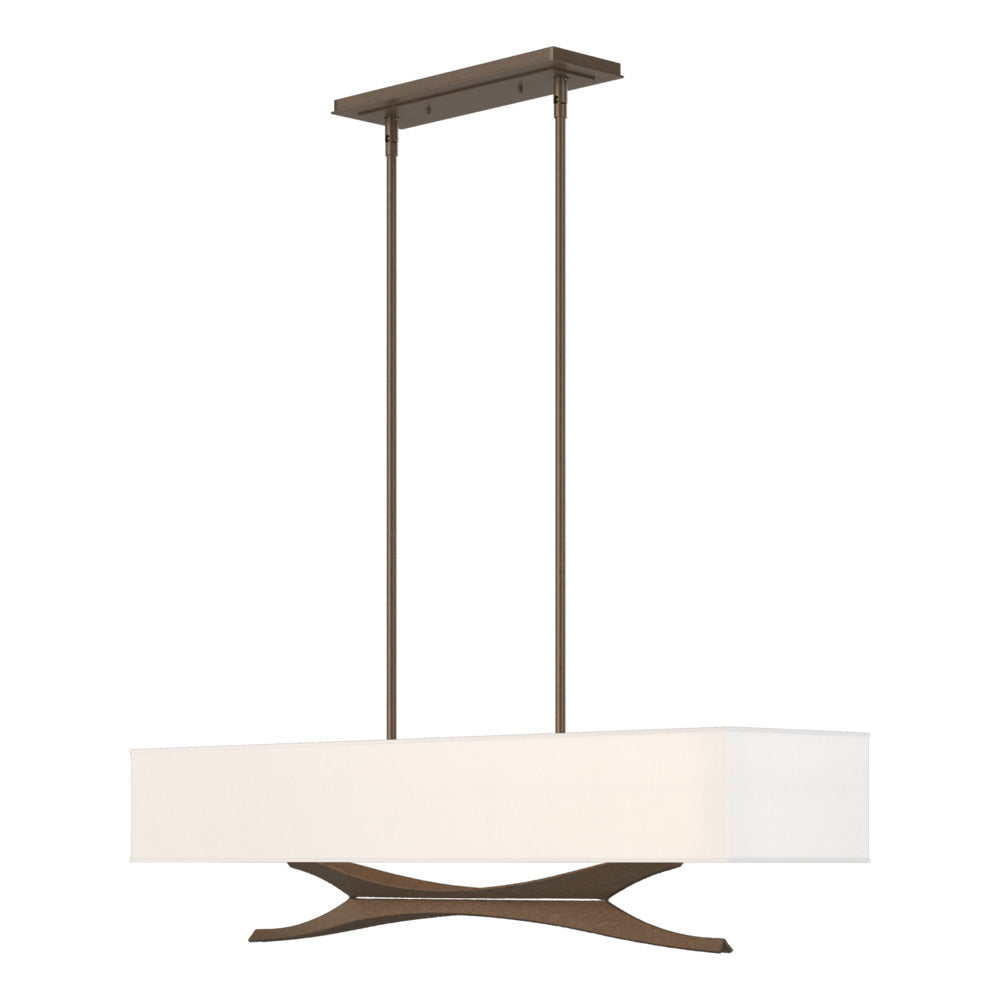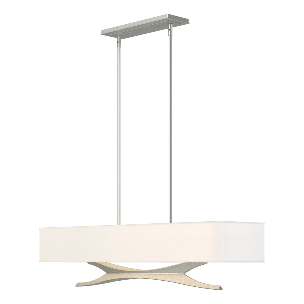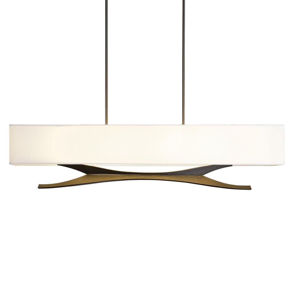 The shade of this pendant looks like it is held up by arms of curved steel. There is understated elegance and strength inherent in this design. Crafted by artisans here at our Vermont forge, each piece is unique.
