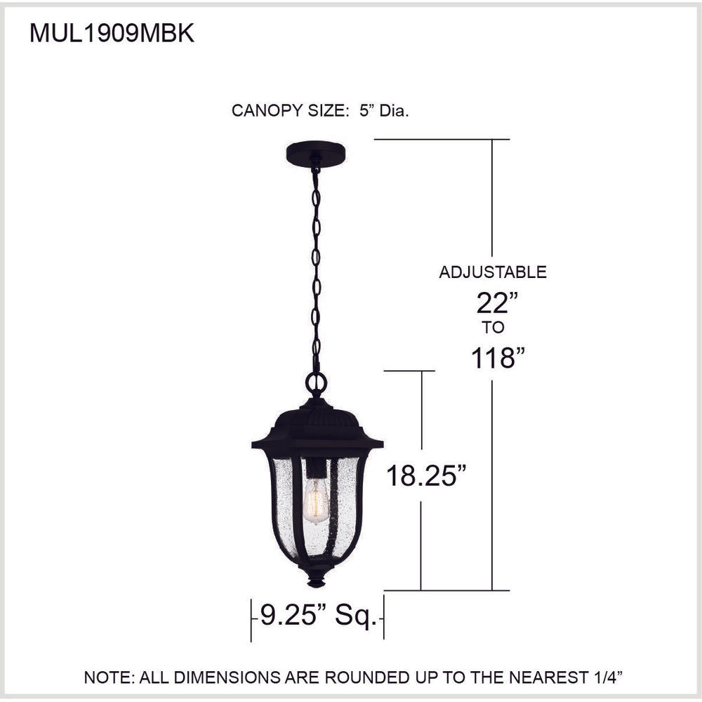 Quoizel Mulberry 1 Light Outdoor Pendant in Matte Black