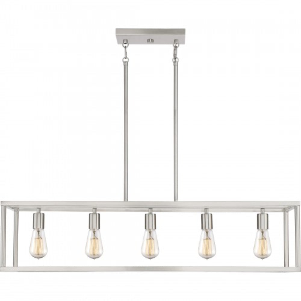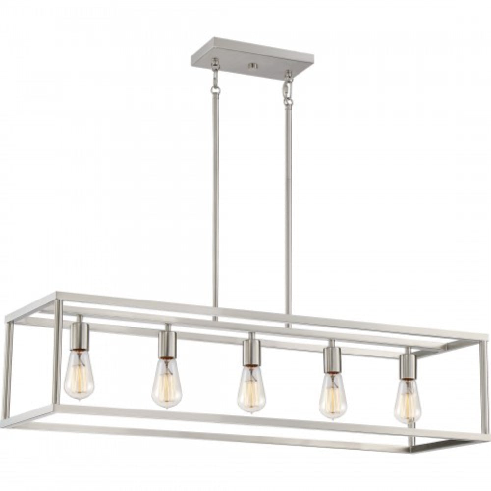 The New Harbor collection is completely unadorned for an open airy feel. The brushed nickel finish complements many decor styles and the Victorian Edison style bulb adds the perfect vintage touch to this understated collection.