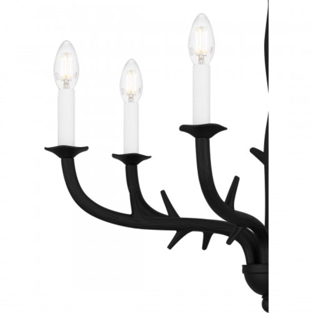 With an earth black finish and thorn-like accents, Oakley chandeliers make an instant statement. Available as a classic chandelier or linear island light, the traditional silhouette features unique details perfect for any kitchen, living room, or dining room space. Candle covers are included in both earth black and white for a fully customizable look.