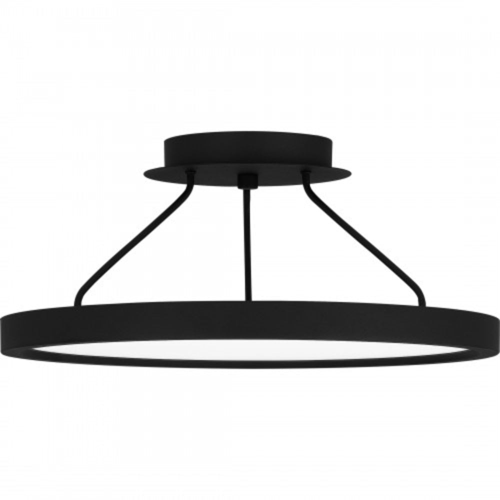Outskirts is as stylish as it is functional. The contemporary semi-flush mount light is available in a variety of sizes, and in either a brushed nickel or matte black finish. An integrated LED light source shines through a round white acrylic shade, giving off the perfect amount of light for any indoor setting.