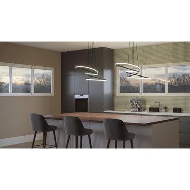 Curvilinear shapes twist and turn in the Ovard pendant. This striking style includes an integrated light source paired with a matte black finish. It's the perfect union of art and functionality for a modern kitchen or dining room.