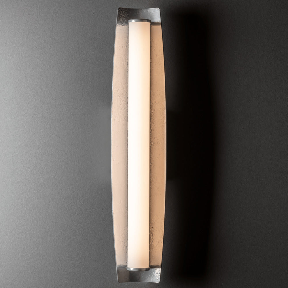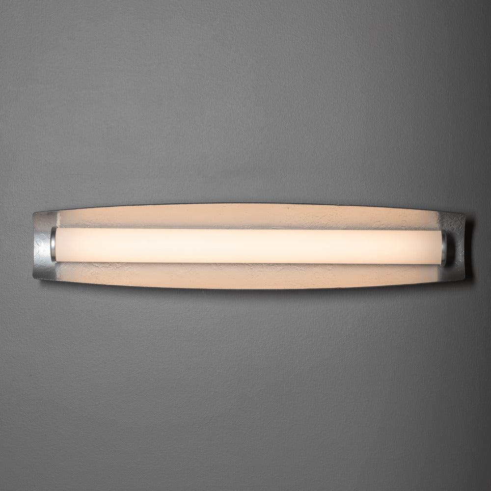 Able to be positioned either vertically or horizontally, the Passage LED Bath Bar makes a statement. Great light delivery, with its opal tube embraced on 3 sides by a beautifully hand-forged and textured steel shield. Simple clean lines make this fixture one that suits a multitude of styles, depending on which finish you select.
