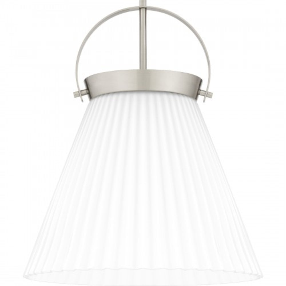 With minimalist details and white ribbed glass, Thibault pendant lights are the perfect complement to a variety of transitional spaces. The white glass shade features a sleek ribbed design, creating a cool pleated effect to soften the illumination. Available in brushed nickel or matte black, Thibault pendants make a statement over any kitchen or bar area.