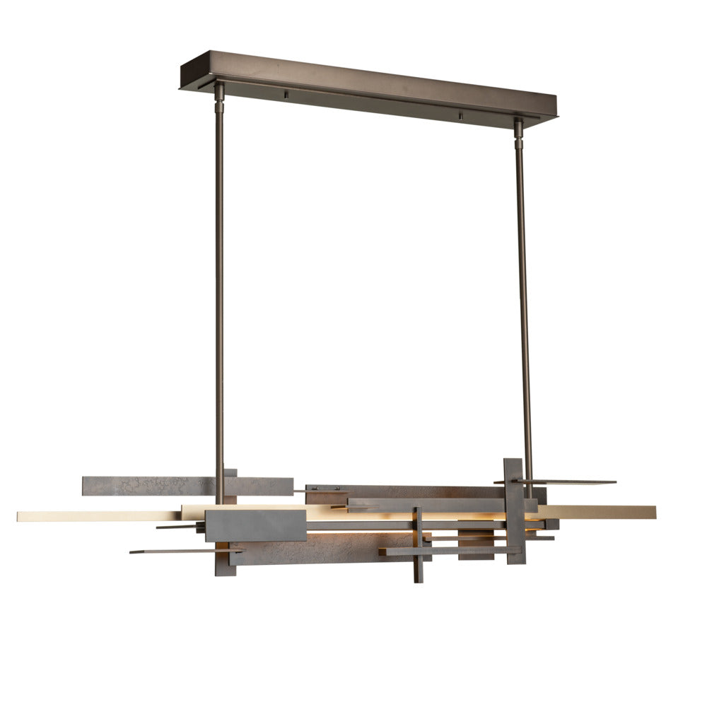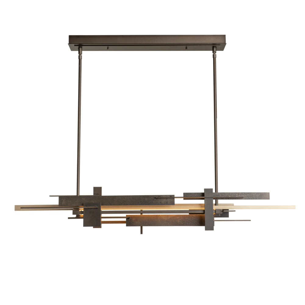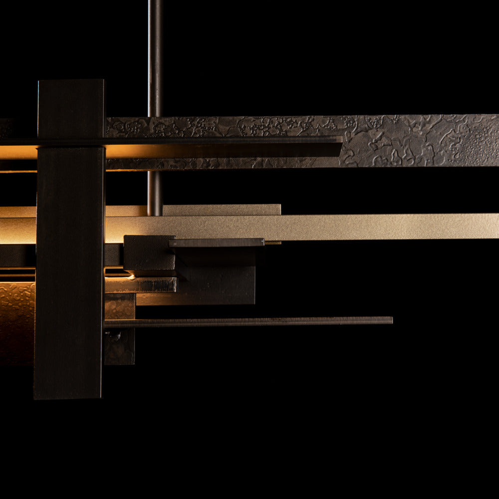 By popular demand, the Planar Pendant with Accent is a bold entry to the Planar Collection. Over 4' in width, and incorporating a new, two-toned aesthetic, the accent is an additional focal interest (shown here in Soft Gold) that warms and brightens the space.