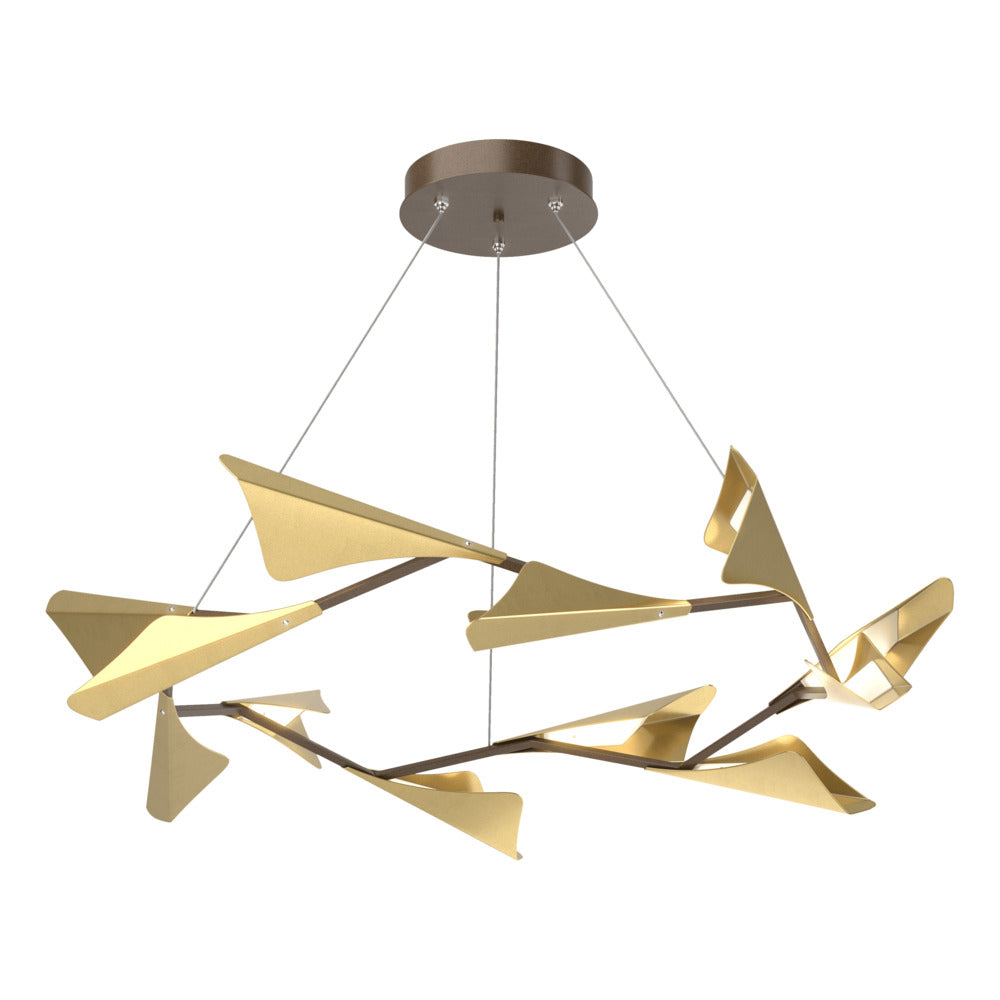 Inspired by the top-selling Quill Collection, the new 2020 Plume Collection features more substantially sized "plumes" that shield individual LED lighting elements. The 12-Light Plume is over 4 ft. in diameter, forming a stunning circular hanging pendant. Available as a two-toned option, one finish is selected for the core, and the same or another finish may be selected for the metal "plumes" to create a piece that perfectly suits its environment. Also available as a 5-Light (vertical) and an 8-Light (circular) pendant.