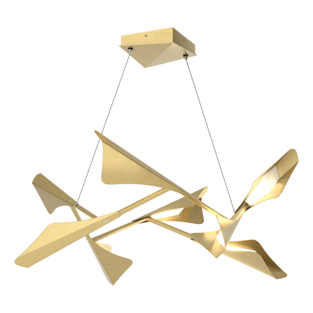 A close cousin to the signature Quill Pendant, the Plume 8-Light Pendant features 8 metal "plumes", each shielding an LED lighting element. With the option for a 2-toned look, the Plume may be ordered with the core in one finish, and the "plumes" in another accent. The Plume 8-Light Pendant features a circular formation with a 37.6" diameter. Also available as a 5-Light (vertical) and a larger 12-Light (circular) pendant.