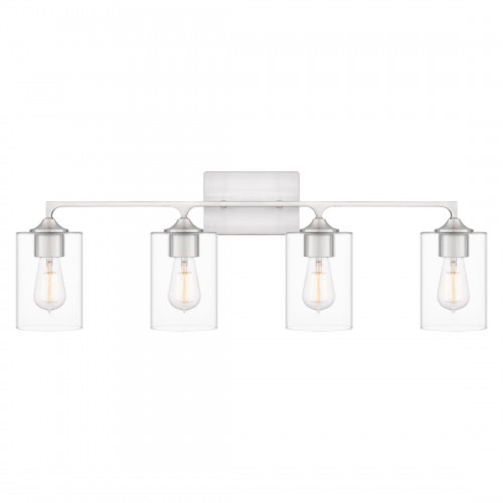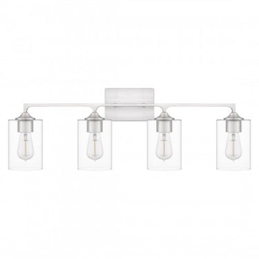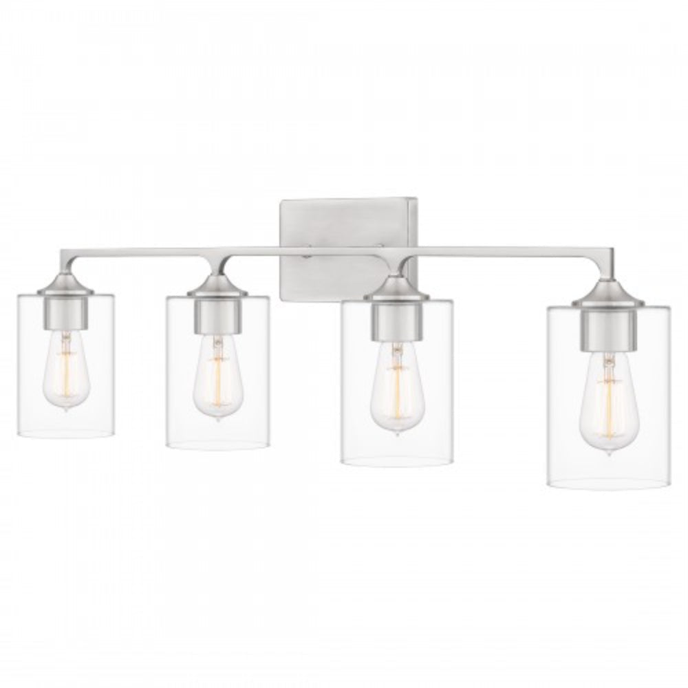 The Prescott bath light offers eye-catching, transitional styling over any bathroom vanity. A simple silhouette and clear cylindrical glass shades make Prescott the perfect choice for understated style. Choose from two, three, or four lights - all available in either brushed nickel or matte black.