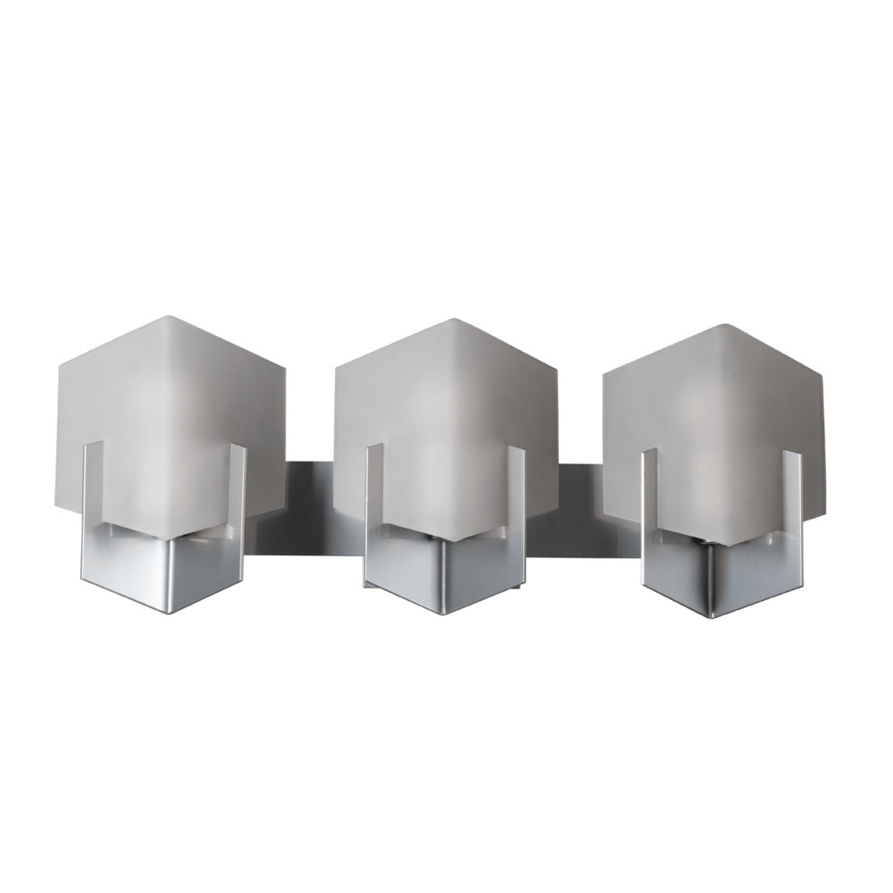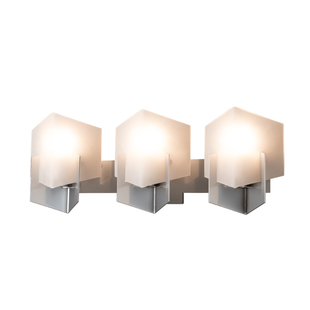 With a very geometric, contemporary look, the Prisma 3-Light Bath Sconce combines beautiful slumped white art glass with angular metal pieces for a great visual effect. Both the glass and the metal feature right angles, and are positioned at opposing faces creating a stunning and elegant look.