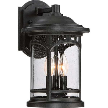 Marblehead is a rich masculine outdoor series and the latest addition to the Quoizel Coastal Armour Collection. The stately form of the metal arches gives the clear seedy glass a window like appearance. Made from a new weather resistant outdoor composite material and featuring a 5 year warranty it is sure to stand the test of time. Add beauty to your home for many years to come with the Marblehead Outdoor Collection. It is available in mystic black, palladian bronze and fresco finishes.