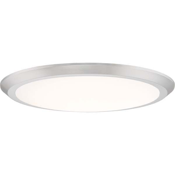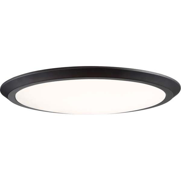 Available in four finishes and four sizes, the Verge flush mount is suited for a variety of room applications. In your choice of Earth Black, Brushed Nickel, White or Oil-Rubbed Bronze, it is featured in sizes of 7.5", 12", 16" or 20". The domed white acrylic shade is illuminated with integrated LED technology and the thick canopy adds depth to the simple structure.