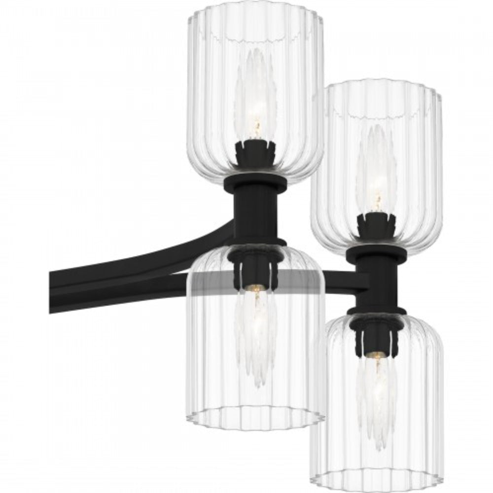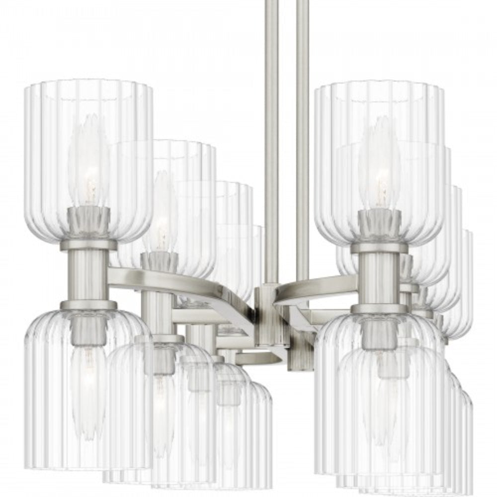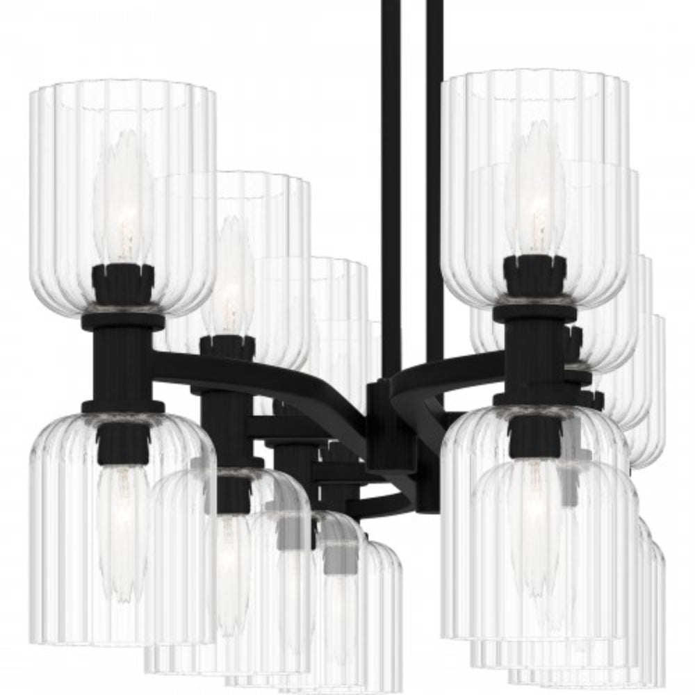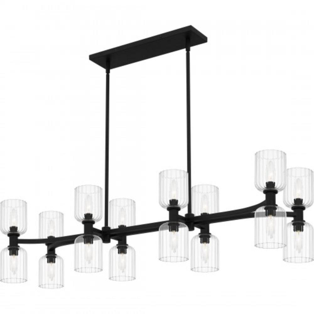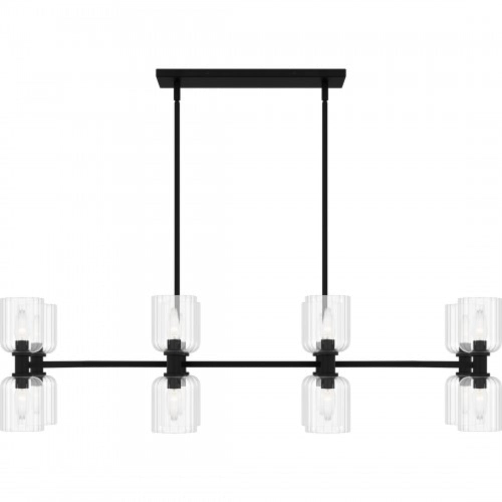 The Ramada linear chandelier makes a subtle statement over any kitchen island or dining room table. This transitional styled island light features clear ribbed glass shades that face both up and down for an enhanced lighting effect. Available in your choice of brushed nickel or matte black, Ramada is a versatile lighting choice that lends itself flawlessly to a variety of spaces.