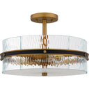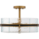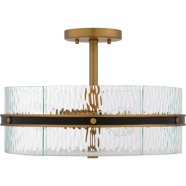 Enhance your space with the Reagan collection, offering both semi-flush mount and pendant light options that bring industrial charm and sophistication to any room. Reagan features a striking brushed weathered brass finish accented with matte black details, creating a bold contrast that highlights its industrial style. Each fixture is complemented by a clear water glass drum shade, adding texture and visual interest while providing a beautiful, diffused illumination.