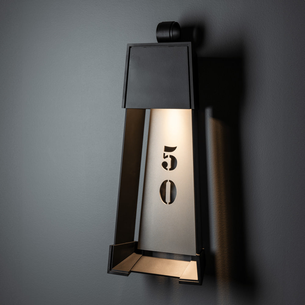 This Dark Sky Friendly exterior wall mount fixture is a classic transitional lantern trapezoid shape. The Revere Medium Outdoor Sconce is the perfect blend of style, functionality, and customization. Want to add a street number or logo to the backplate? We can do that. Designer David Martin created this fixture to be easily customizable. Need a different size? Talk with us.