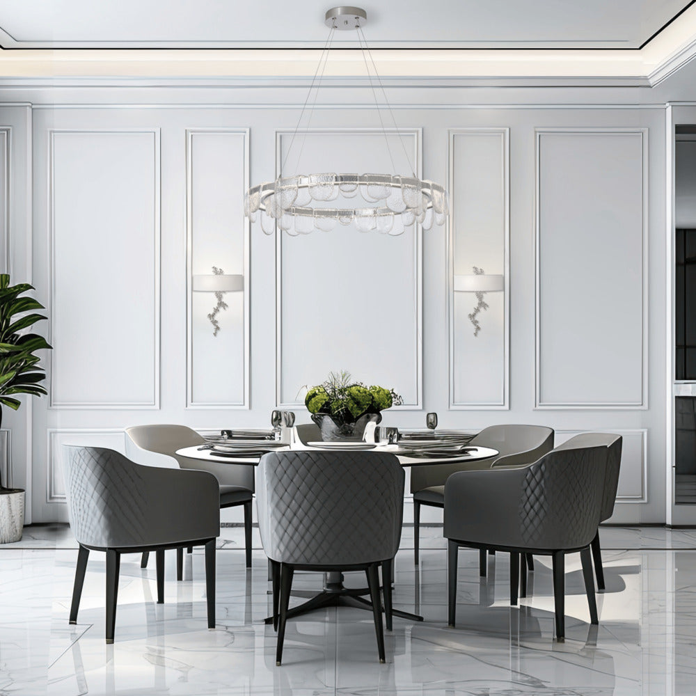A riverbed of light. Stunning heavily-textured, clear poured artisanal glass in varying sizes are formed and shaped, then positioned on a round LED light-guide platform to stunning visual effect. Inspired by the cold icy streams of Vermont, adorned with ice-covered rocks and boulders, designer Andy Morter envisioned the Riverbed Collection to be like the frozen stones set along the river's edge.