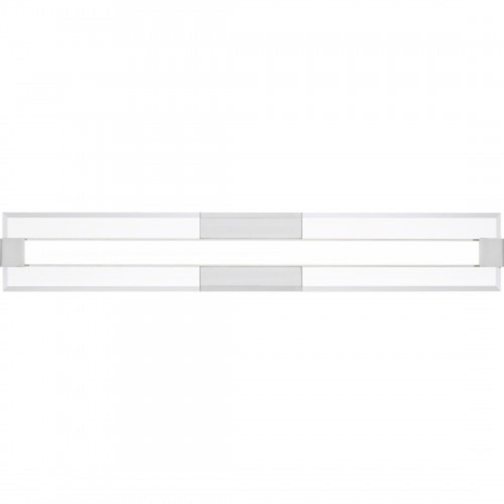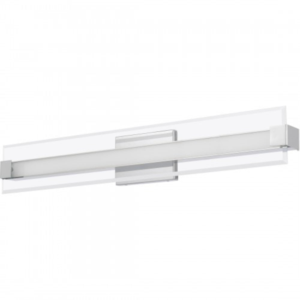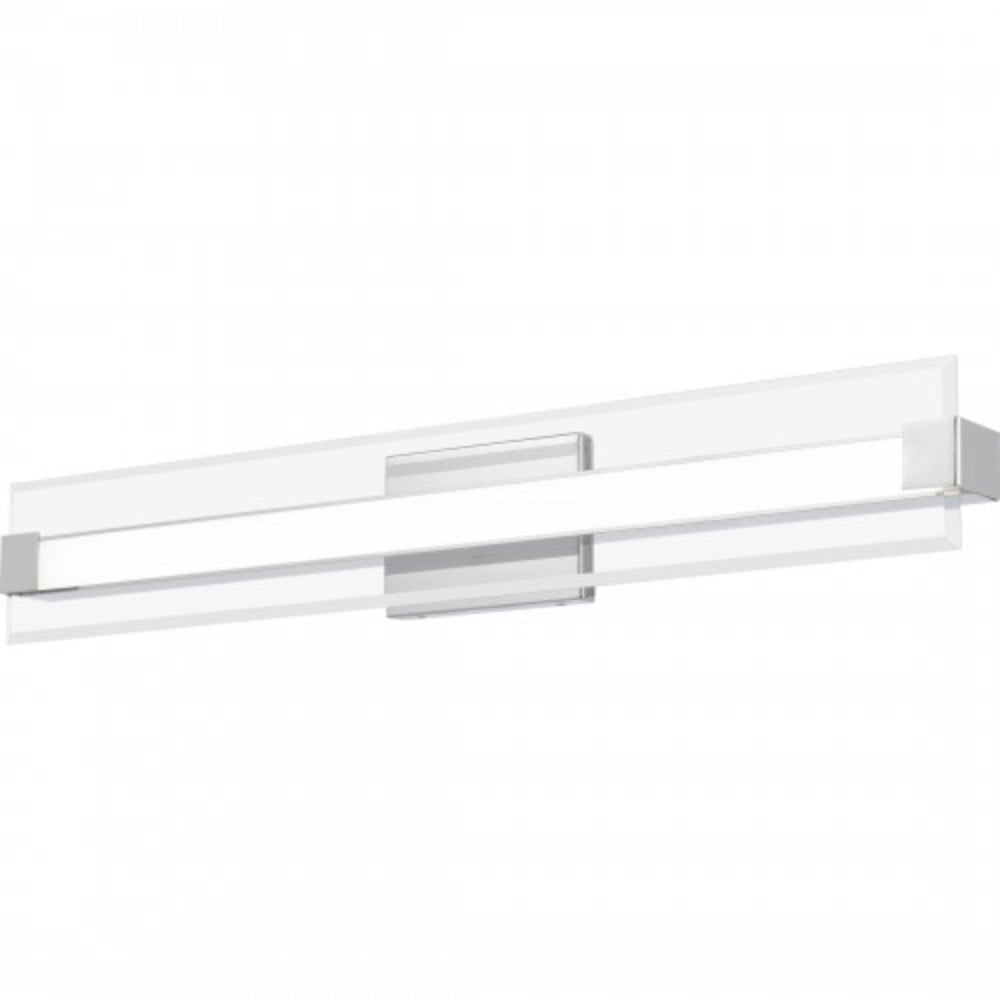 The Salon collection is modern minimalism at its finest. Clear beveled glass floats in the foreground, while a sleek integrated LED radiates from behind. The layered components are secured by discreet end brackets to a glossy backplate which are both finished in polished chrome for a contemporary shine.