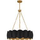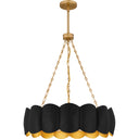 Enhance your modern decor with the Santana collection, featuring both pendant and semi-flush mount options. Santana is defined by a sleek matte black finish that serves as a sophisticated backdrop. Each fixture in the Santana collection is designed with a black shade that features hammered detailing on the exterior, creating a textural contrast. The interior of the shade is painted gold, ensuring optimal light output and a warm, inviting glow. Complemented by gold accents and hardware, this collection brings a touch of modern elegance to any space.