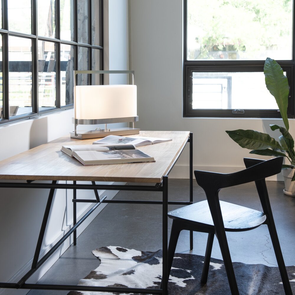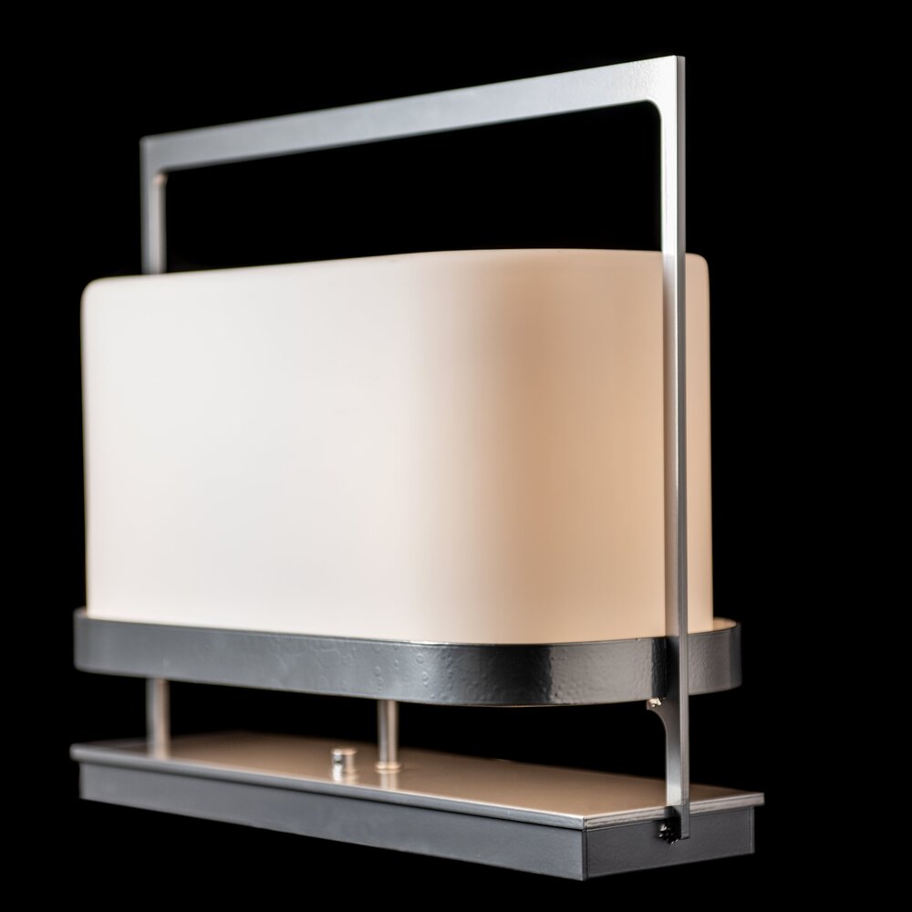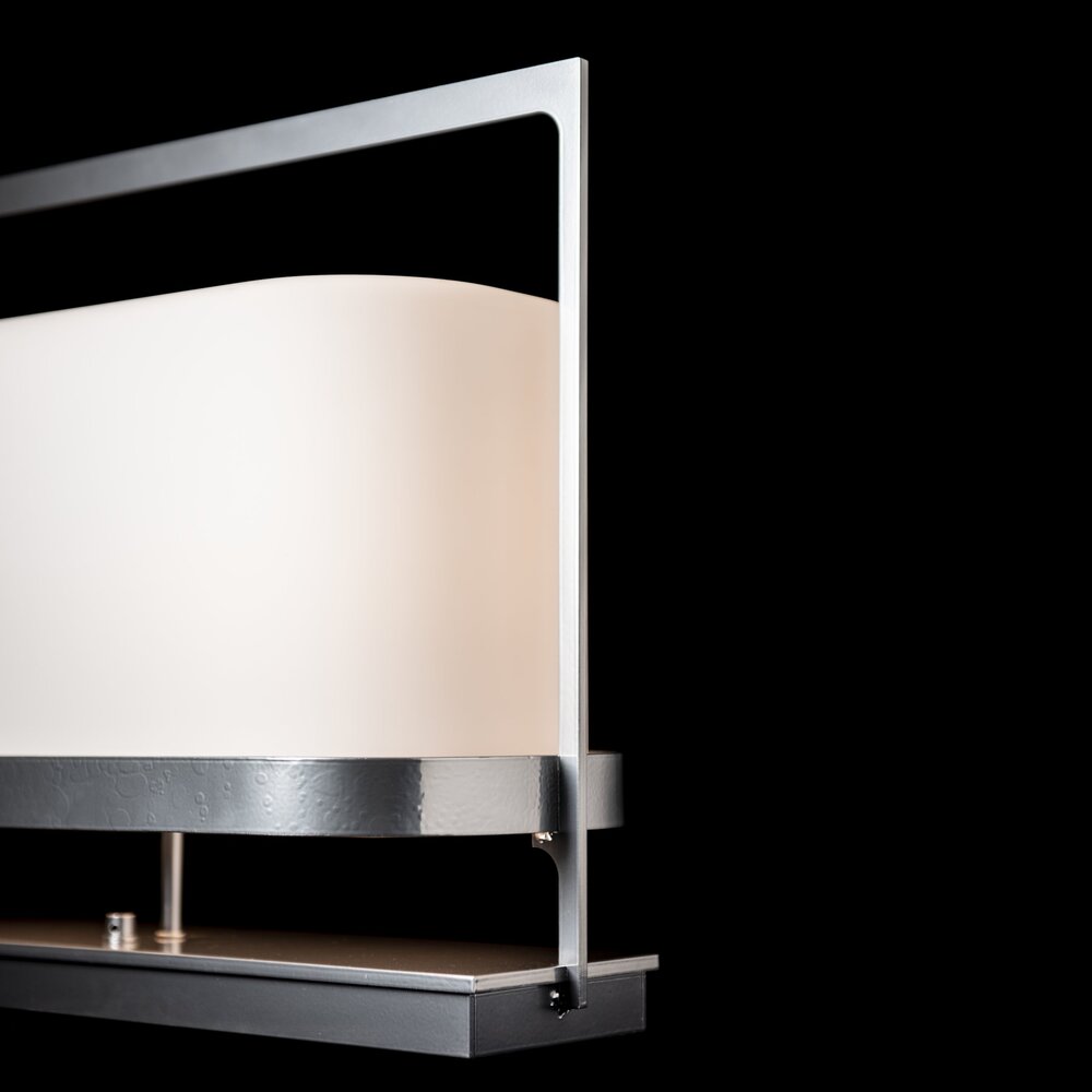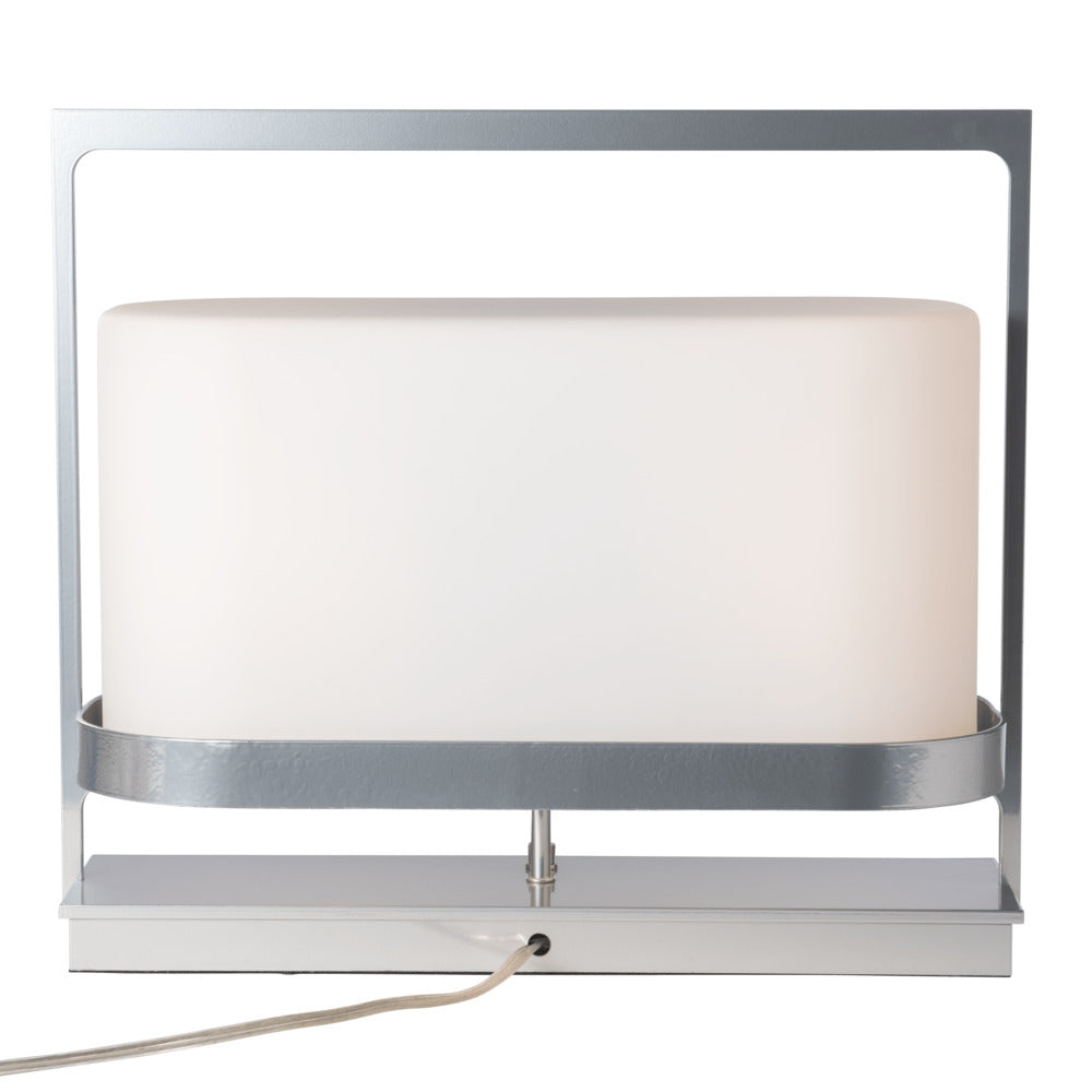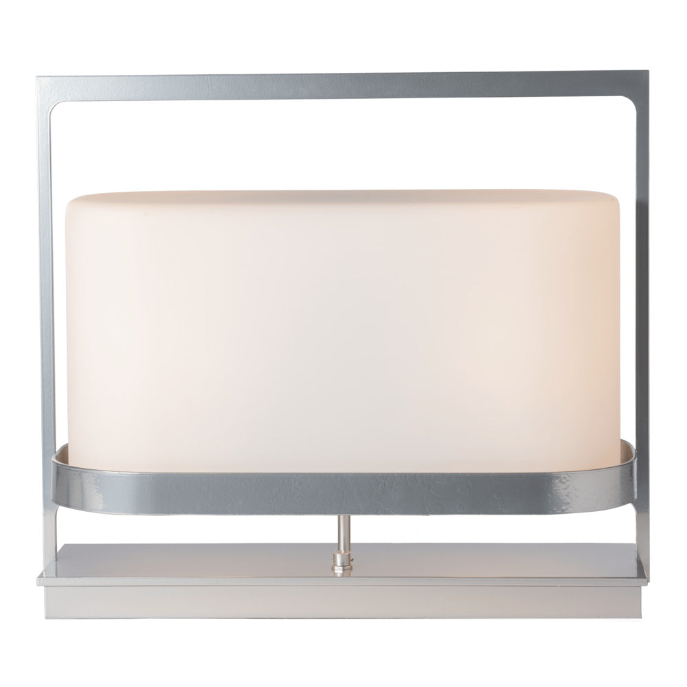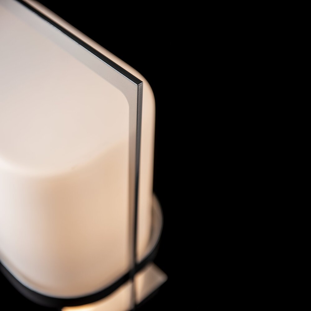 Serenity Table Lamp, a harmonious blend of elegance and nature-inspired design. Crafted with a steel protective frame that gently cradles a soft glass shade, this lamp evokes the serenity of Vermont's picturesque farm fields in early summer with their white wrapped bales of hay.