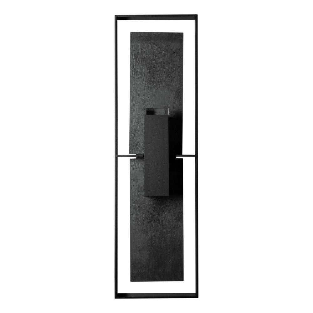 This 34" tall Shadow Box features a natural Vermont black slate backplate, giving it an organic sense of drama. Designer David Martin was inspired by contemporary architecture as he conceived this stunning outdoor wall mount. In an effort to protect our night skies from unnecessary light pollution, this Dark Sky Friendly version features a light inhibitor, impeding uplight from interfering with the evening splendor. Available in a choice of AAMA 2604-rated Coastal Outdoor Finishes.