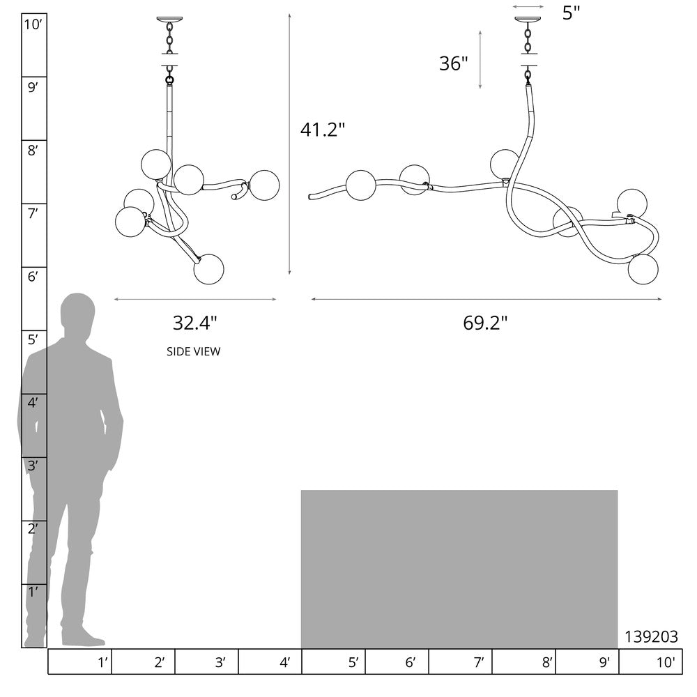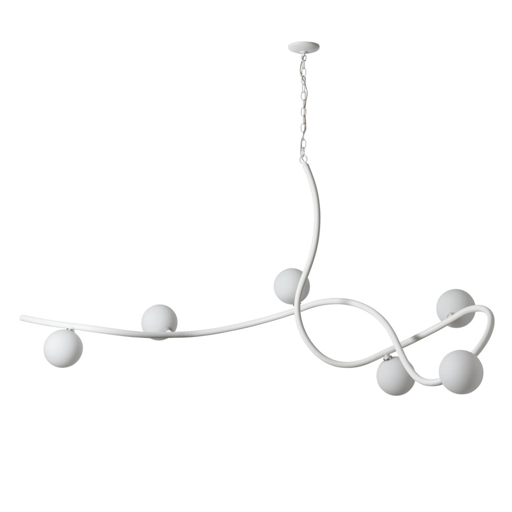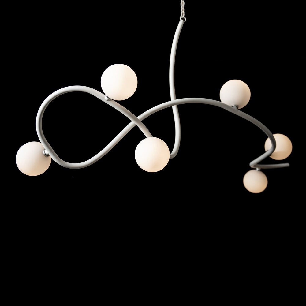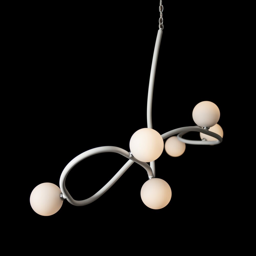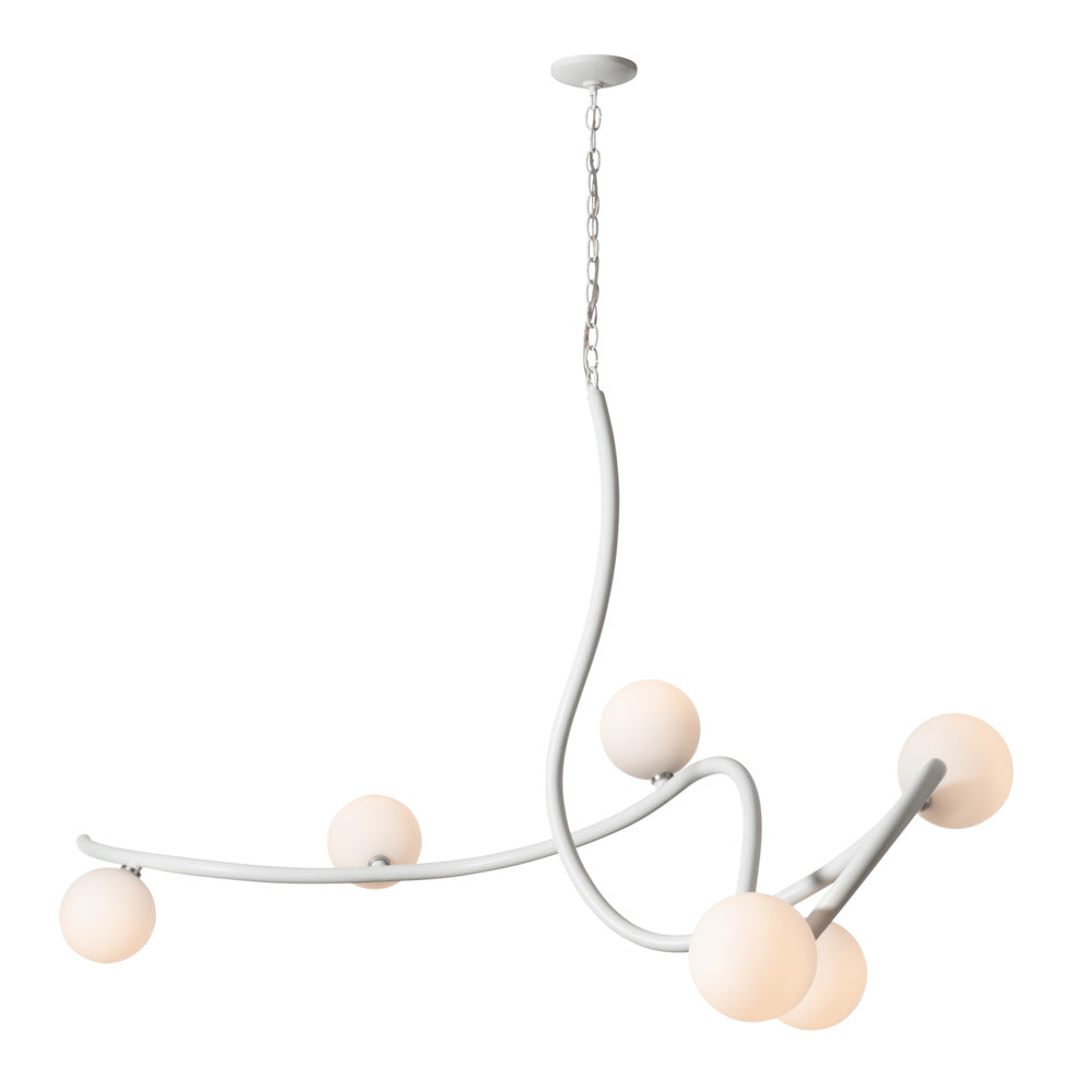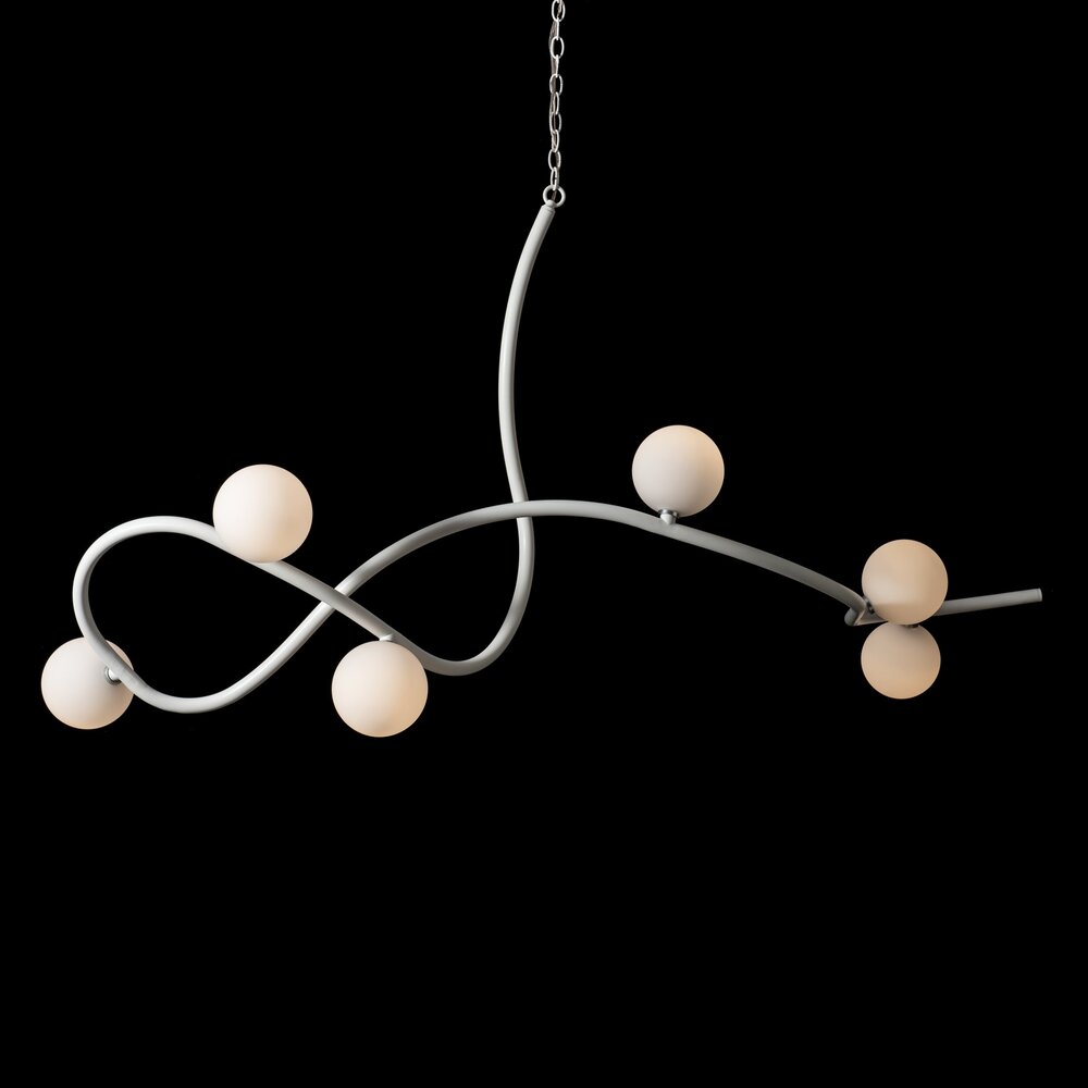 Illuminate your home with this Slide 6-Light Pendant. With a stunning 69.2" span, it's sure to be the highlight of any room. Perfect for creating a beautiful focal point over a large dining table, kitchen island, bar or reception area, this XL light is sure to become the topic of conversation. Handcrafted and shaped by our Vermont artisans, the swooping curved steel chain-hung fixture features 6 opal glass globes.