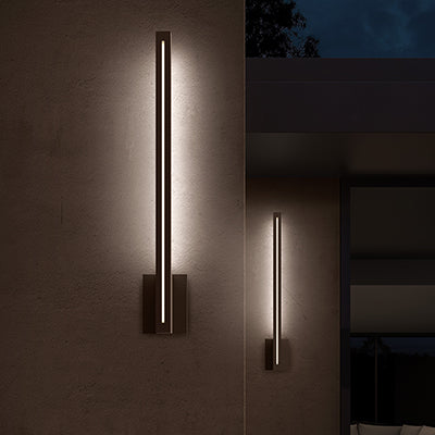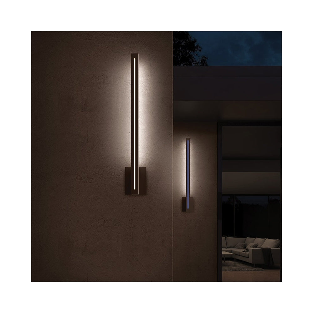 This square vertical column is a strong and commanding element, with presence and dramatic impact. Light is indirectly reflected off the surface it is mounted upon, haloing the white LED front stripe, which can be made red, blue, or yellow by an interchangeable color strip.