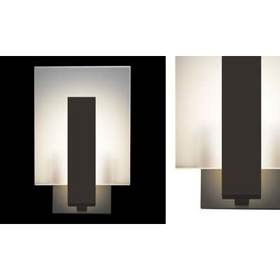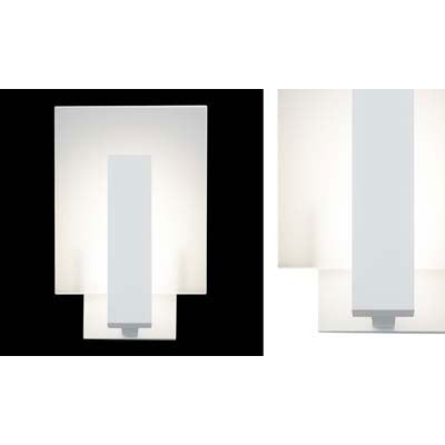 The classic modern elegance of straightforward geometry sets a frosted glass rectangle against a crisp rectangular beam, radiating the glow of its LED illumination.