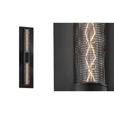 Uptown sophistication with a downtown edge allows the glow of this helix filament to radiate through the texture of black wire mesh. The grit of the hip urban edge is captured in the coolness of the Gotham collection.