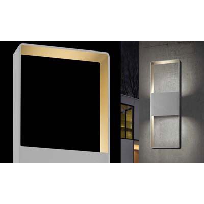 Framed LED radiance is internally directed and reflected to illuminate indoor or outdoor surfaces. Light is projected downward or up and down to halo the bold yet thin profile.