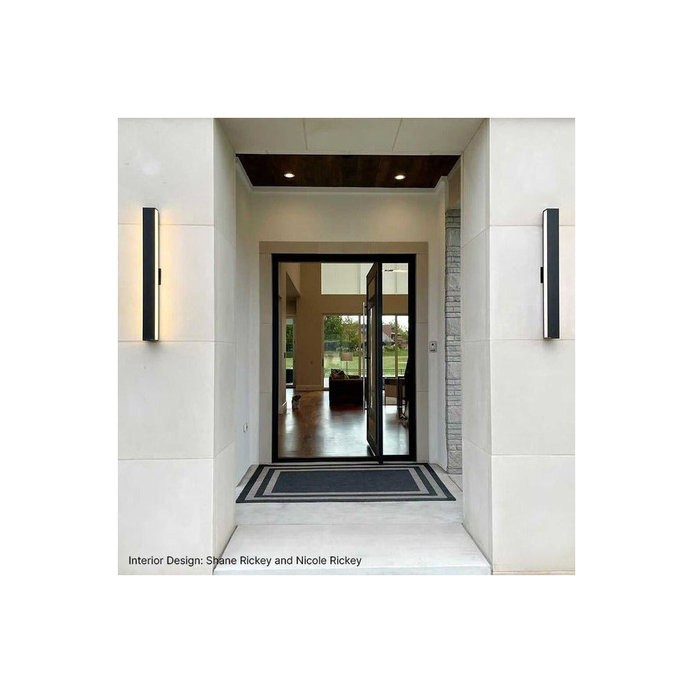 Broad and powerful LED illumination projects from the sides of a simple linear profile.