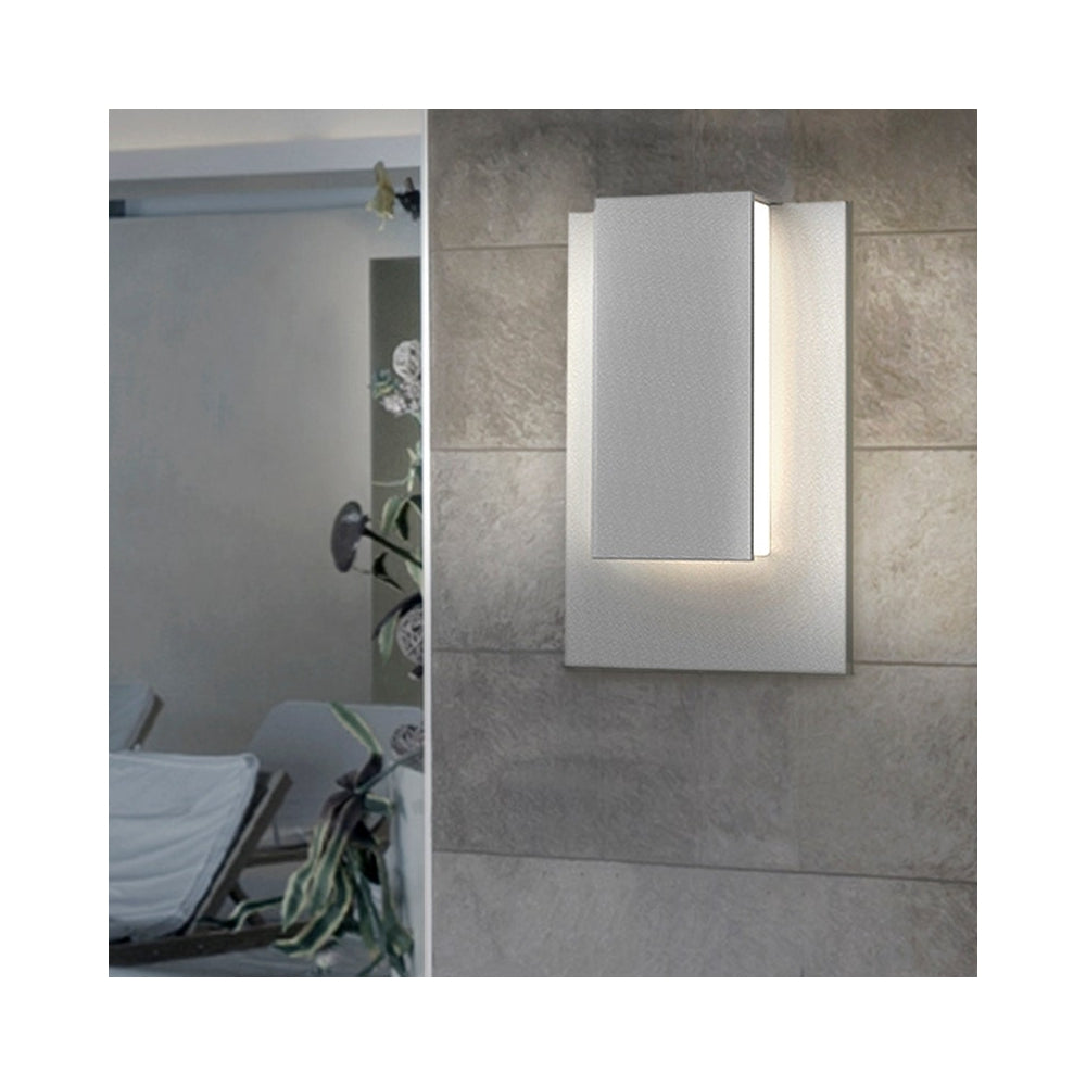 An illuminated perimeter is revealed between the layered planes of this LED luminaire, casting light indirectly on three of its textured sides.