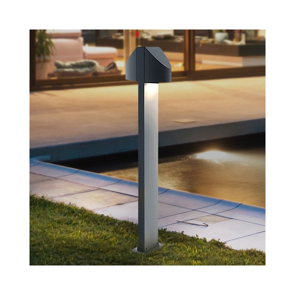 Bring definition and architectural interest to outdoor sites and along paths or planted beds, with bollards of perfect solid geometry and LED lighting functionality. | Geometric solids, in unity with rectilinear columns, form single-sided and double-sided LED illuminated bollards that compose the dramatic impact of crisp simplicity.