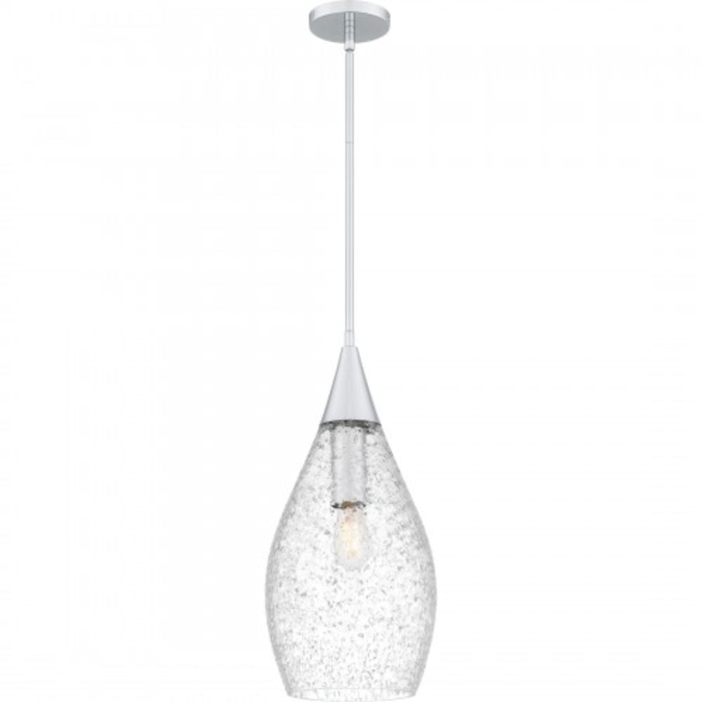 Polished chrome and a unique embedded glass shade make a classic yet glamorous pairing in Spruce pendant lights. Part of the popular Platinum by Quoizel collection, Spruce lends itself to a variety of modern or contemporary style settings. Hang Spruce pendants over any kitchen island or bar area for a touch of understated luxury.