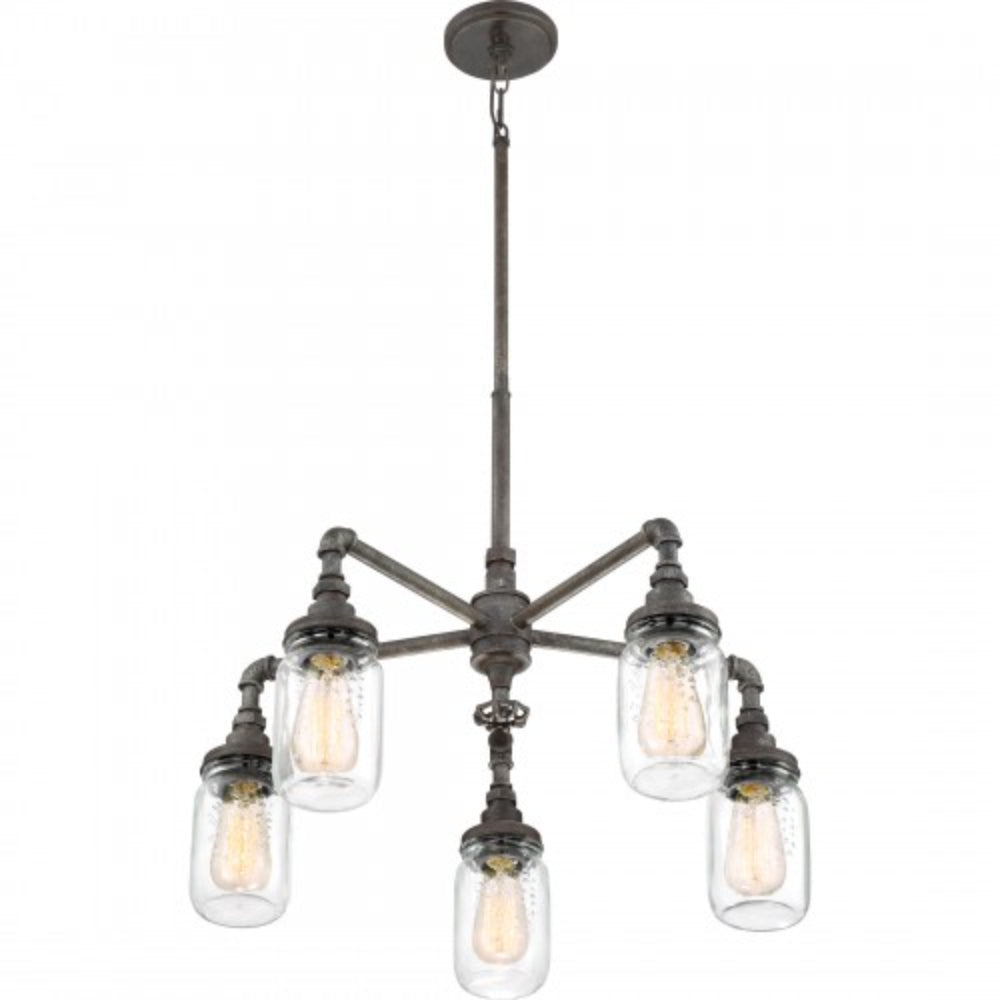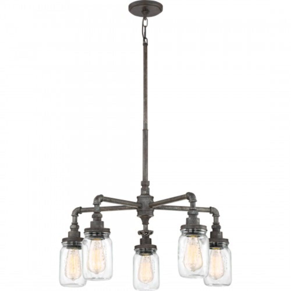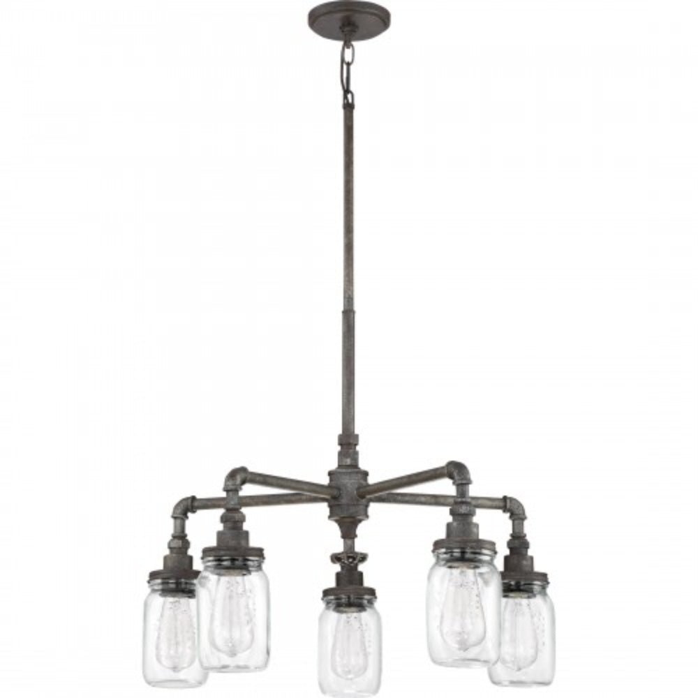 Shabby chic, industrial, rustic...the Squire Collection contains all of these elements in one, cohesive design. The fixture body is comprised of pipes and elbows and comes in a Galvanized or Rustic Black finish which features an aged appearance. The beautiful clear glass mason jars are embellished with fruit-inspired designs that encase vintage-style bulbs completing the farmhouse style.