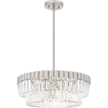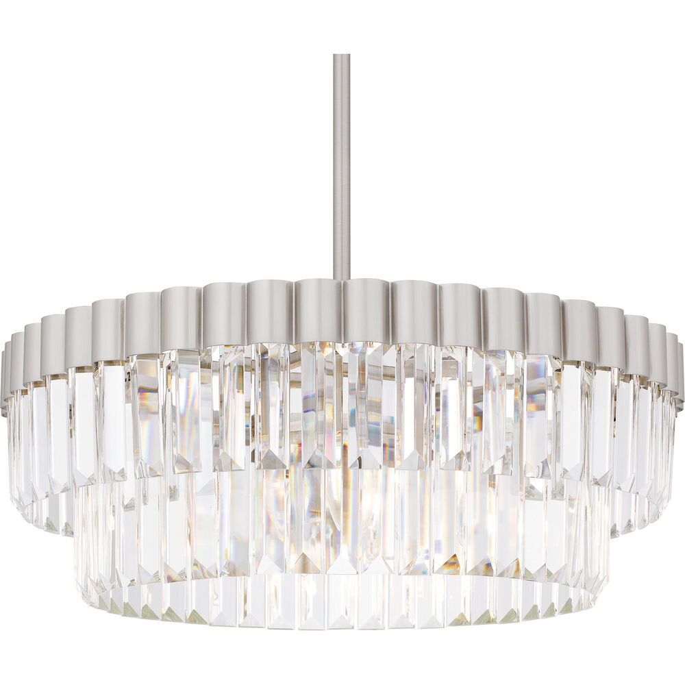 With clear crystal glass and a sleek finish, Starlight adds the perfect touch of elegance to any room. The clear crystal glass shade emits a dazzling glow, highlighted in either brushed nickel or matte black. Available as a semi-flush mount or pendant light, Starlight makes a perfect addition to any luxury or glam living space.