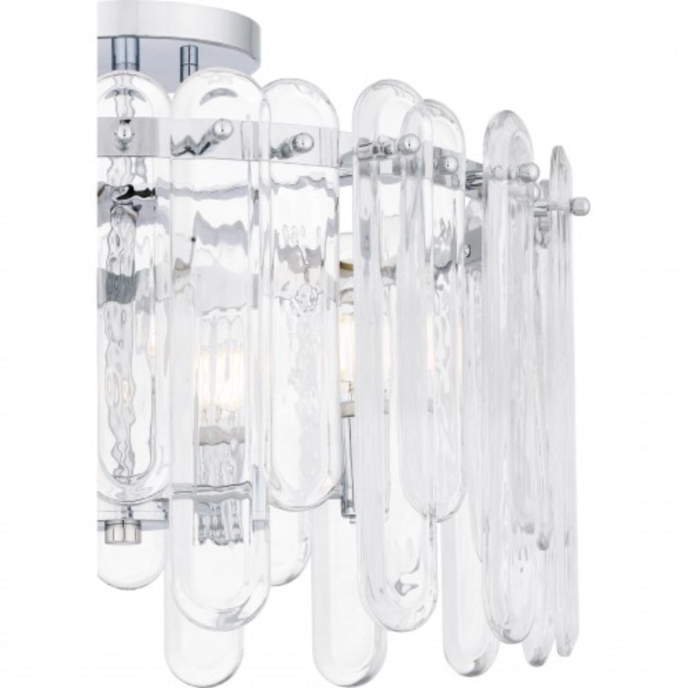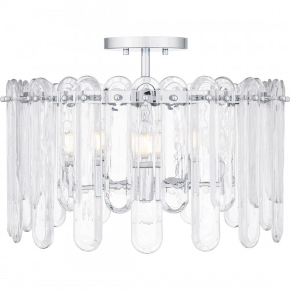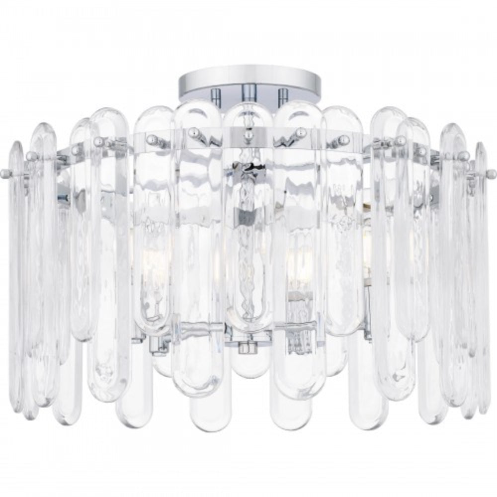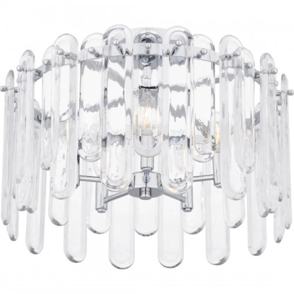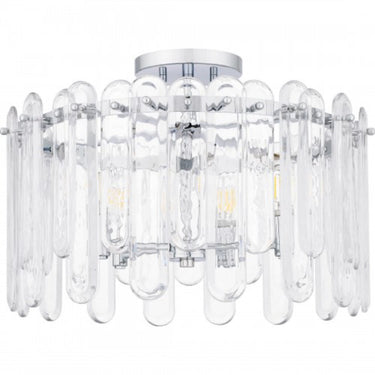 With a polished chrome finish and clear glass, Stiles is all about sparkle and luxury. Alternating lengths of clear glass create a dazzling illumination effect, giving the impression of glimmering crystal. Part of the popular Platinum by Quoizel collection, the Stiles ceiling light is the perfect complement to glam, modern, or contemporary spaces.