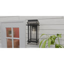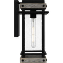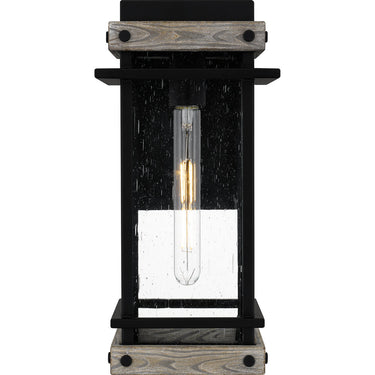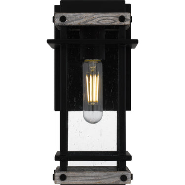 Create a lasting impression with Strader outdoor lanterns. A matte black frame and distressed wood accents pair with clear seedy glass panels for a farmhouse-ready look. Available as a hanging lantern or in various sizes of wall lantern, Strader is an easy way to add stylish illumination to a front porch or landscape.