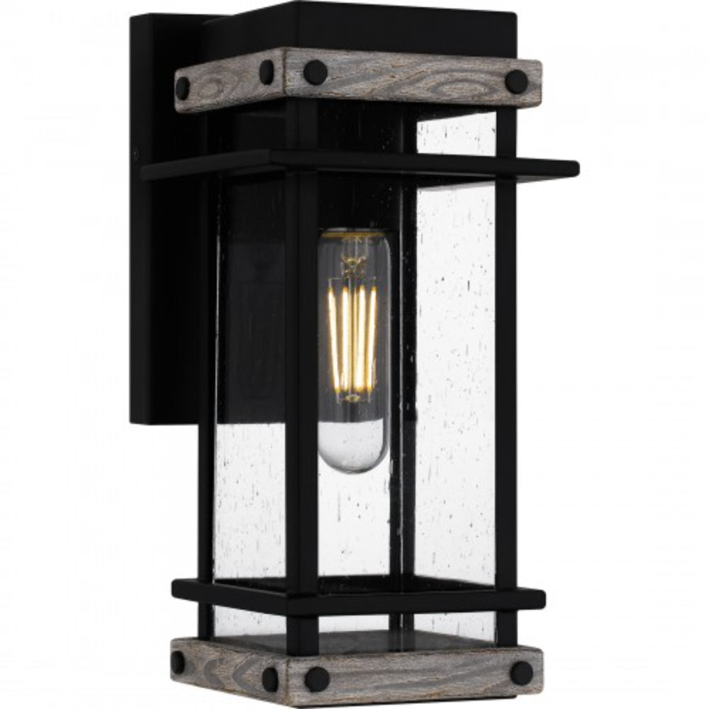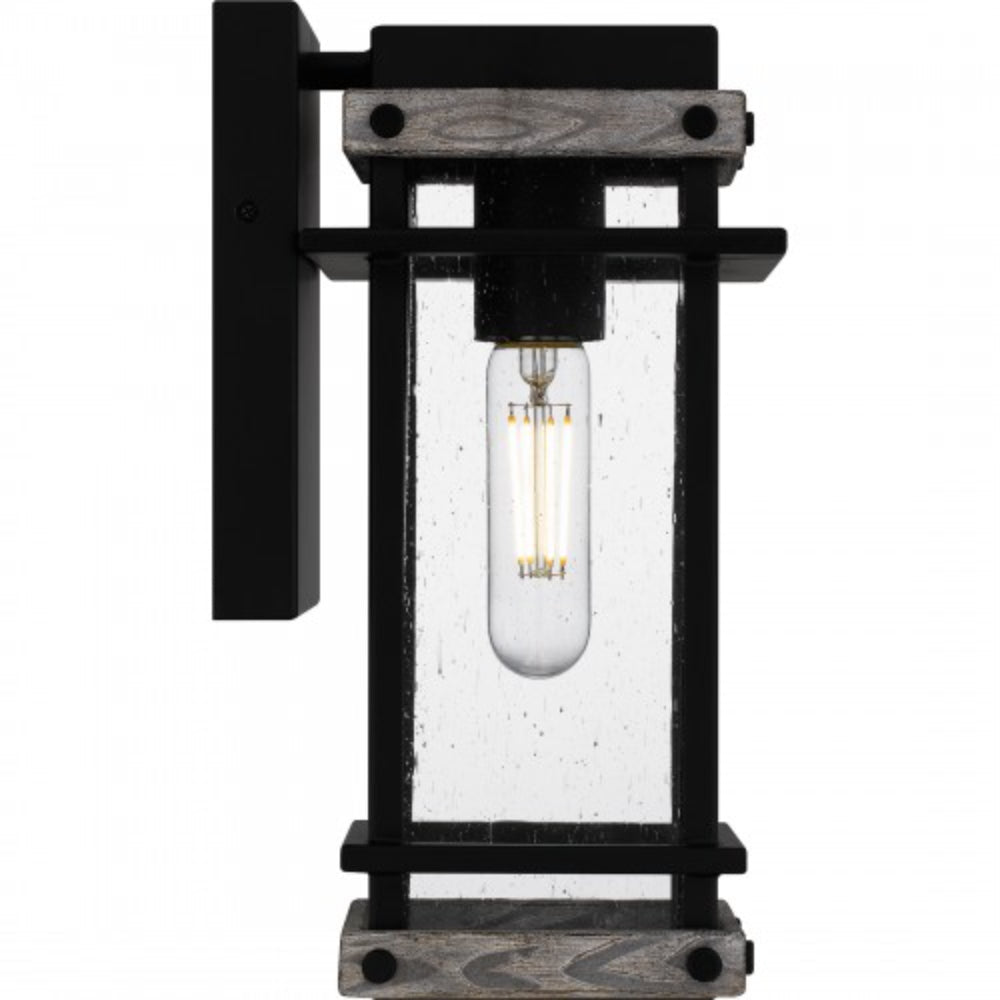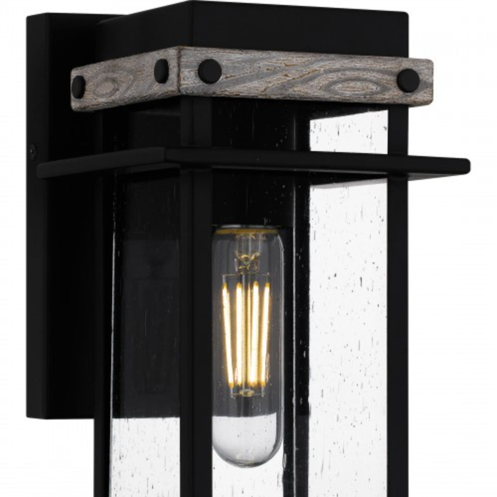 Create a lasting impression with Strader outdoor lanterns. A matte black frame and distressed wood accents pair with clear seedy glass panels for a farmhouse-ready look. Available as a hanging lantern or in various sizes of wall lantern, Strader is an easy way to add stylish illumination to a front porch or landscape.