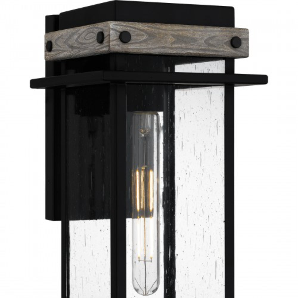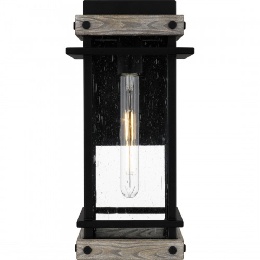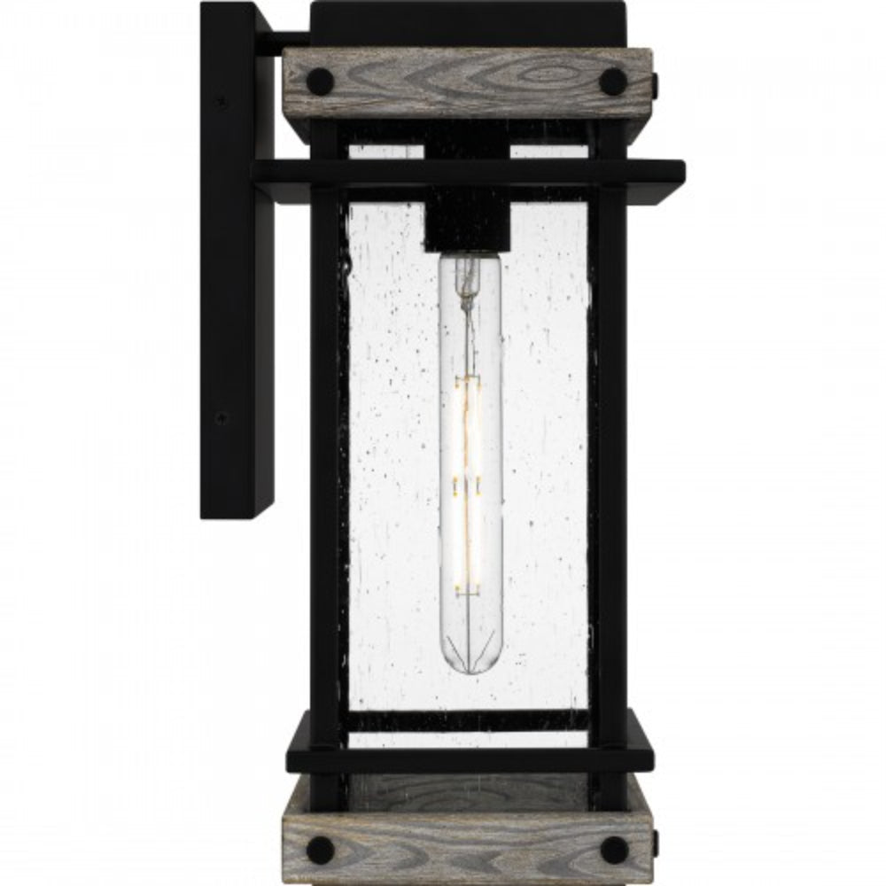 Create a lasting impression with Strader outdoor lanterns. A matte black frame and distressed wood accents pair with clear seedy glass panels for a farmhouse-ready look. Available as a hanging lantern or in various sizes of wall lantern, Strader is an easy way to add stylish illumination to a front porch or landscape.