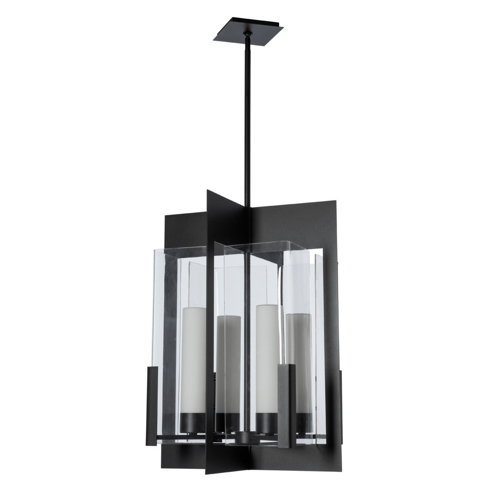 Looking for a traditional lantern with a contemporary twist? The Summit is a large scale interior lantern featuring four lit frosted cylinders within large, clear vertical rectangular glass. Intersecting steel plates give a modern, dramatic feel, with both glass and steel elements having clean 90º angles.