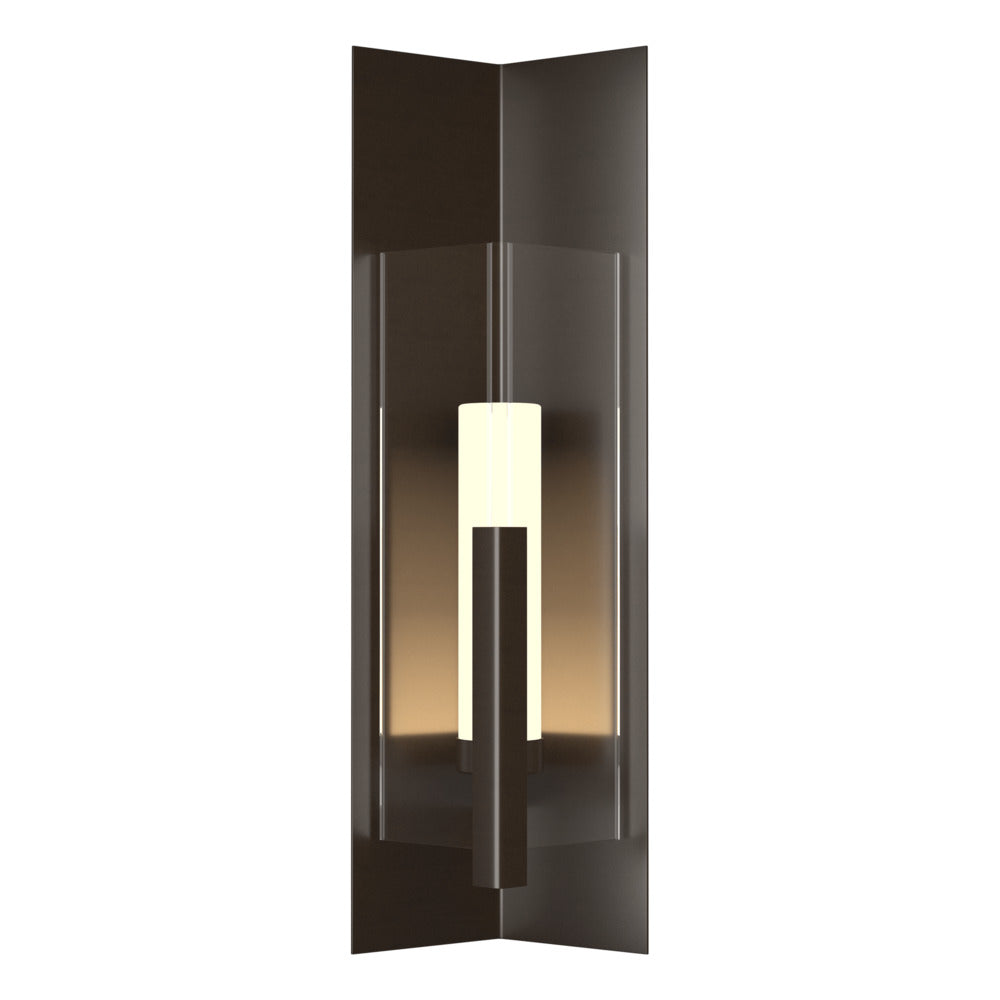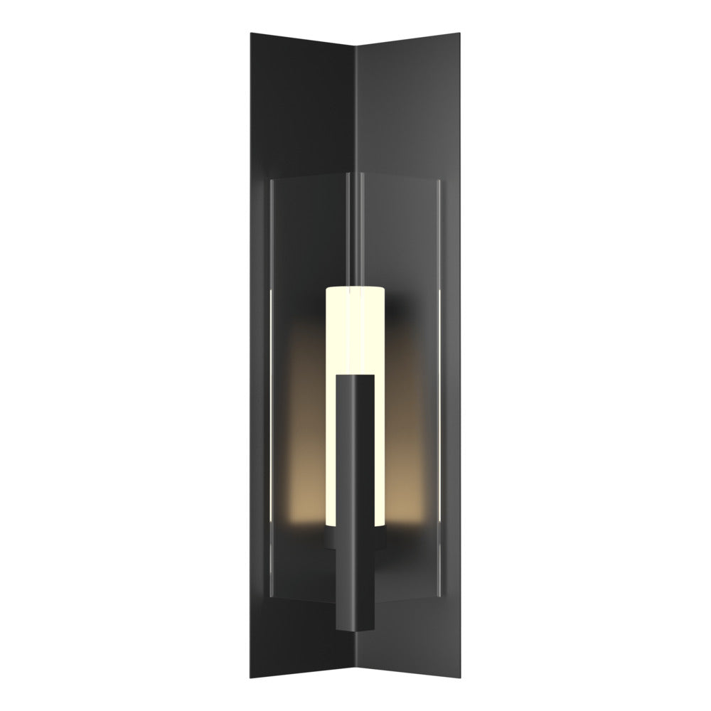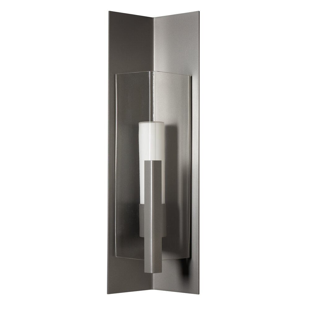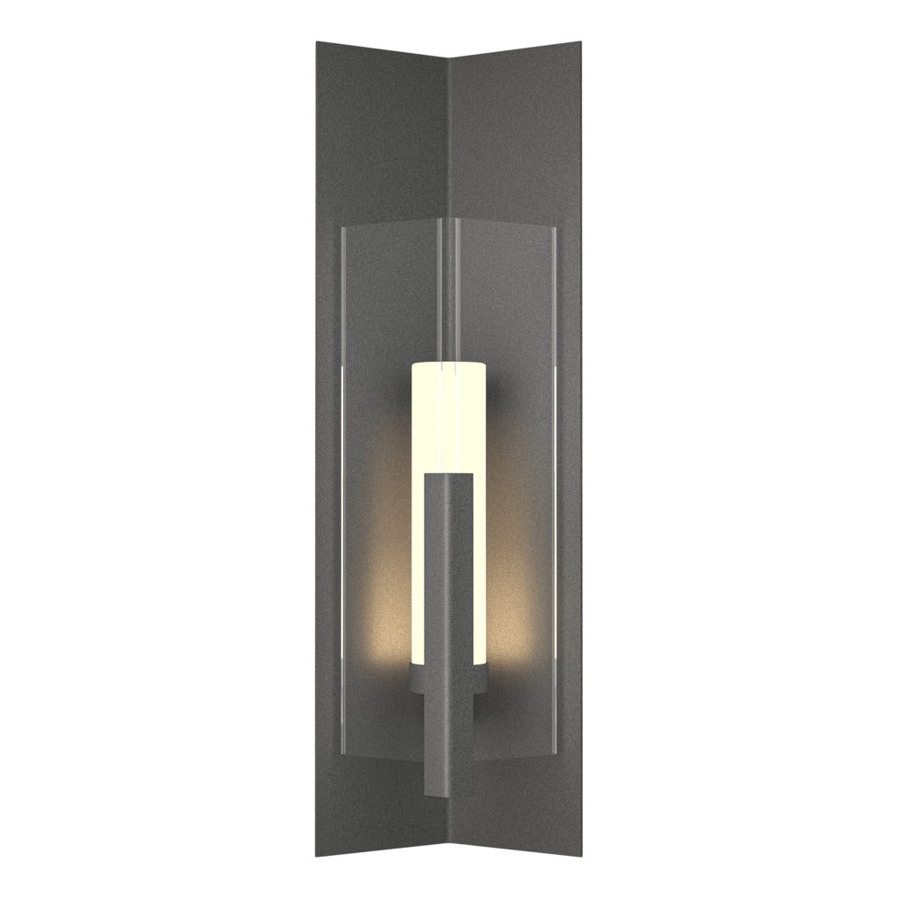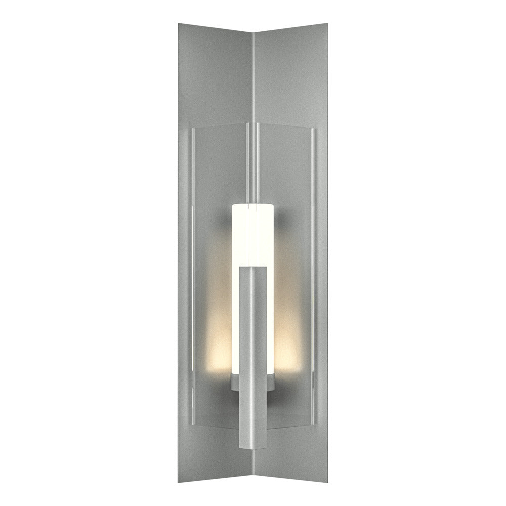 This 34" tall contemporary Summit Large Outdoor Sconce features 1 angle in 2 different materials used 3 ways in complementary sizes and dispositions. Former jeweler, now HF Designer Ori Goldberg explains, "I used to make similar style earrings. The Summit has clean, simple lines to suit many architectural styles." Inner frosted diffuser with opal or clear outer glass, and a choice of AAMA 2604-rated Coastal Outdoor Finishes.