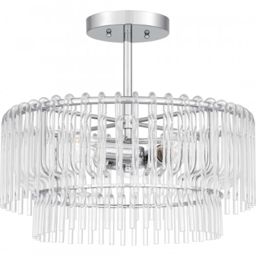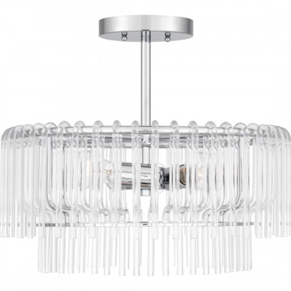 Part of the popular Platinum by Quoizel collection, Tayshia is a true statement of beauty. The clear glass shade features a cascading layered design that adds a fun, airy feel. With a sleek polished chrome finish, the Tayshia ceiling light is a perfect complement to glam, modern, or contemporary spaces.