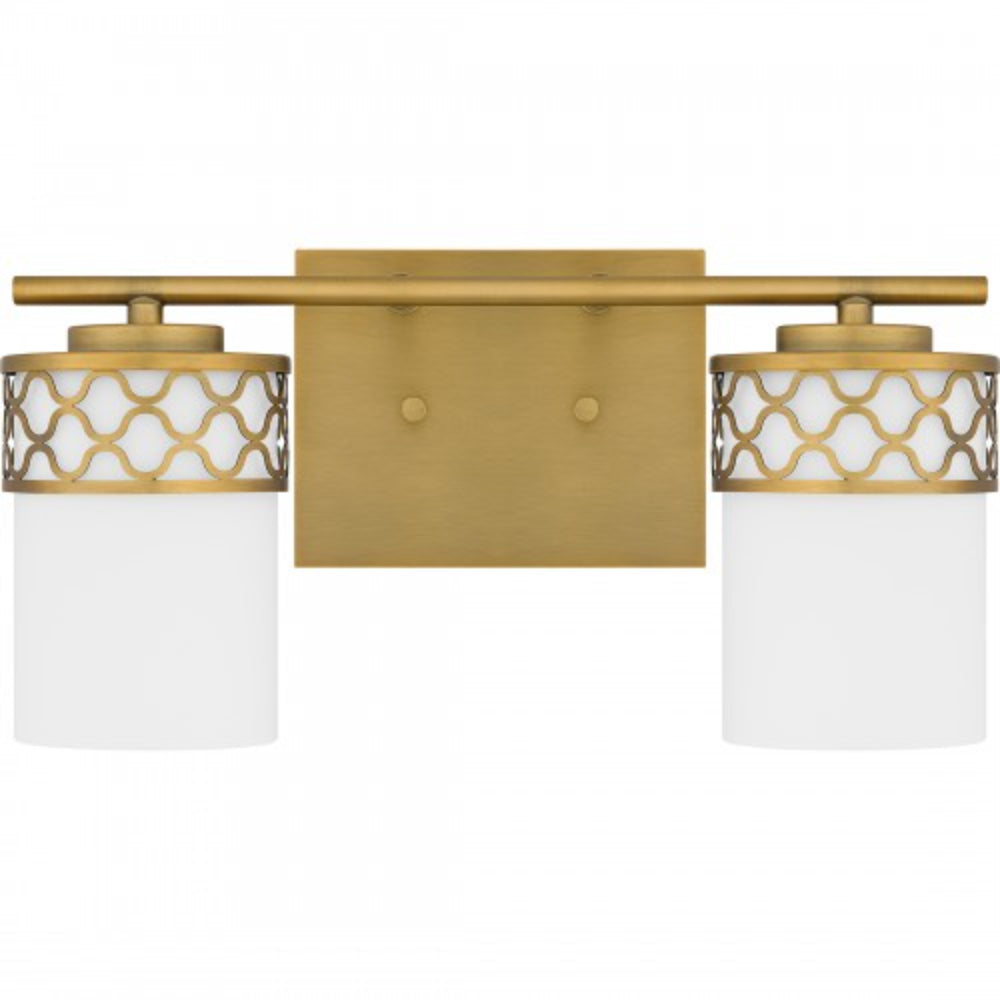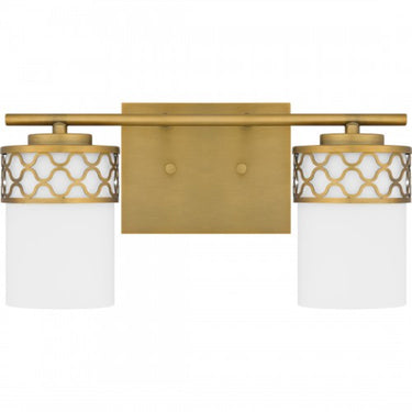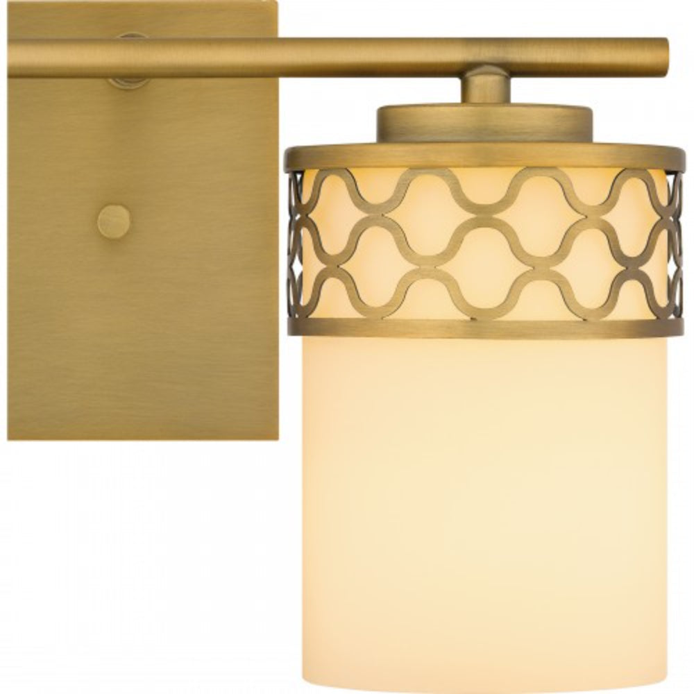 Add a touch of modern luxury to your bathroom with Tenley. The opal etched glass shades are wrapped in a delicate geometric pattern, inspired by the cool curving lines of Moroccan architecture. An aged brass finish adds sophistication and shine, making Tenley bath lights the perfect statement over any vanity.