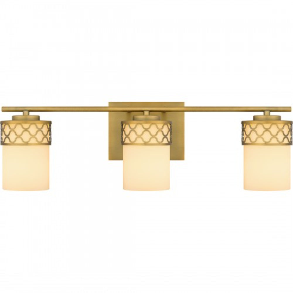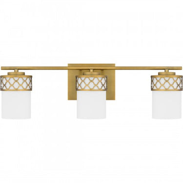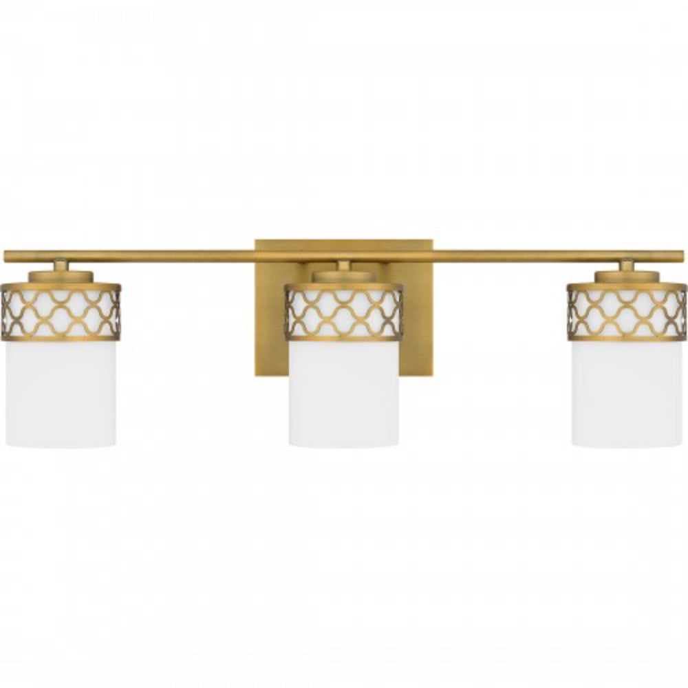 Add a touch of modern luxury to your bathroom with Tenley. The opal etched glass shades are wrapped in a delicate geometric pattern, inspired by the cool curving lines of Moroccan architecture. An aged brass finish adds sophistication and shine, making Tenley bath lights the perfect statement over any vanity.