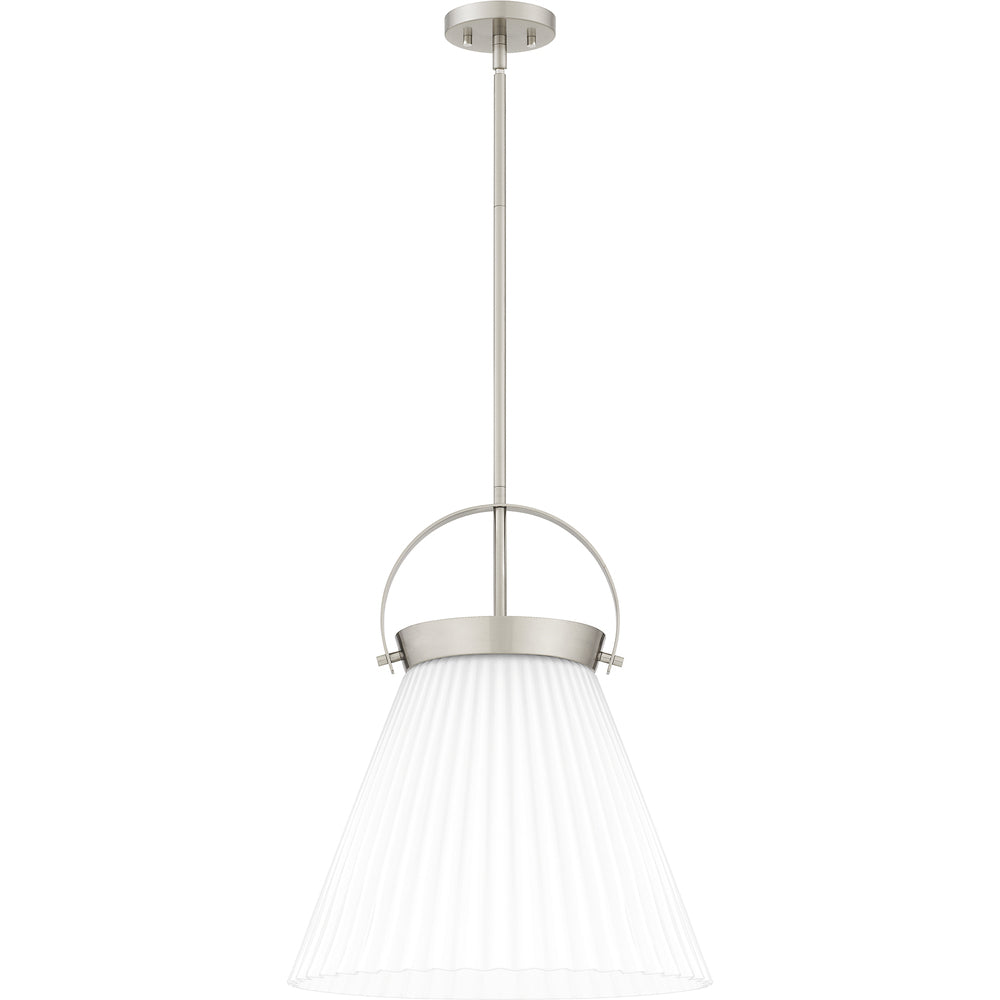 With minimalist details and white ribbed glass, Thibault pendant lights are the perfect complement to a variety of transitional spaces. The white glass shade features a sleek ribbed design, creating a cool pleated effect to soften the illumination. Available in brushed nickel or matte black, Thibault pendants make a statement over any kitchen or bar area.
