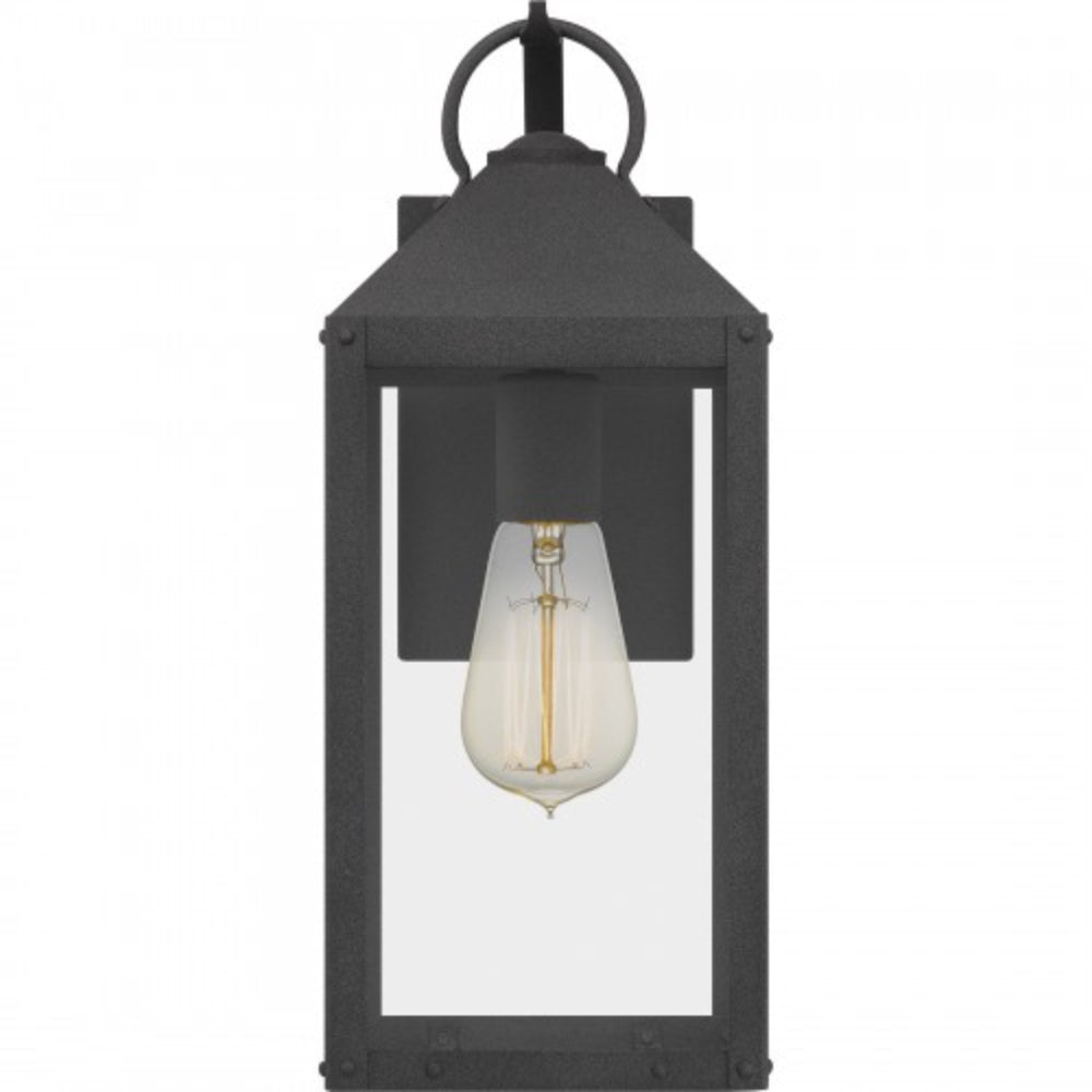 Wow your guests and neighbors with the Thorpe collection of outdoor lanterns. Clear tempered glass panels are enclosed in a traditional rectangular Mottled Black frame, providing life-long style and durability. Thorpe comes in many options including a hanging lantern, wall lanterns, and a post lantern to round out your home's exterior.