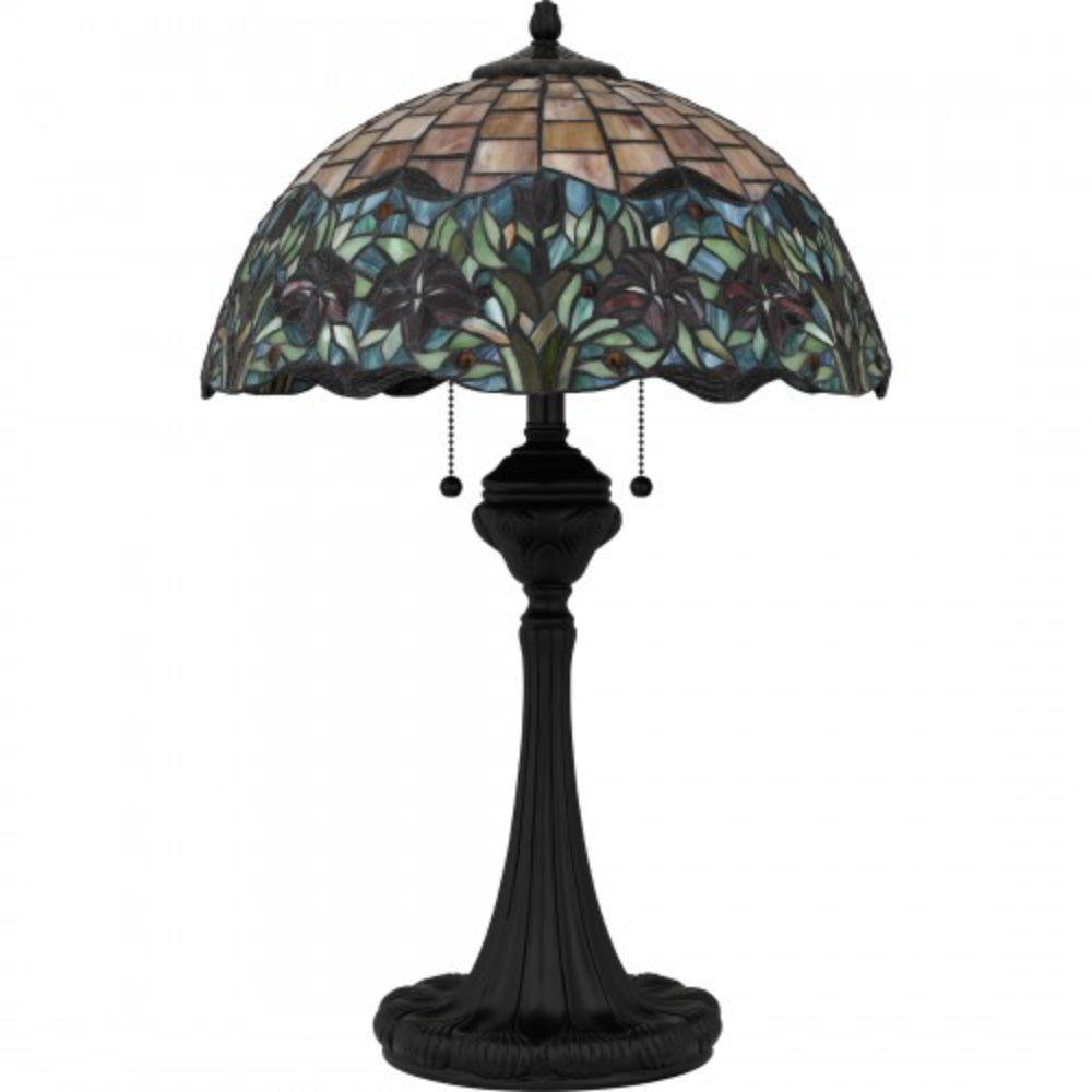 With a pretty floral design, the Venice table lamp adds a feminine touch to any room in your home. The multicolored Tiffany glass shade is hand assembled and perfectly arranged into a mesmerizing floral pattern, creating a unique experience. The elegant base is finished in matte black and includes two pull chains for ease of use.