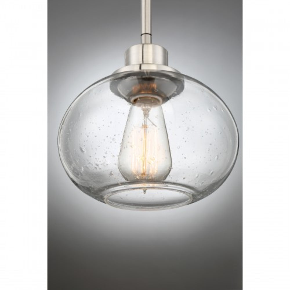 Trilogy pays homage to Thomas Edison with a vintage inspired filament bulb that is not only nostalgic but also very chic. With the classic brushed nickel finish and the clear seedy glass shade, Trilogy brings old world style to modern elegance. On trend and classy.
