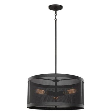 A distinctive mesh lampshade in the Gereon series harkens back to the industrial days of machine innovation, adding a rugged look of workmanship that transforms an interior's identity. At once stylistic and utilitarian, Gereon is available in a finely textured Black finish with medium base sockets. The muted glow of the bulbs beneath the mesh framing adds a rugged personality. The versatile Gereon fixtures are damp rated for covered outdoor installations as well. Available as a 1-light mini-pendant, 3-light and 4-light pendants, 2-light semi-flush ceiling mount, and 1-light wall sconce to adapt interior settings in a variety of ways.