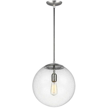 While hanging globes are one of lighting's hottest trends, the timeless Leo series has been around for 50 years! Constantly evolving with the times, these classic pendants are now offered with NEW Clear Seeded glass and in Satin Aluminum finish. Adjustable cloth cords allow for unlimited variations of hanging heights. All glass softly diffuse the light, each fixture comes with 54" of cuttable cord to customize the installation exactly to your needs. Easily convert every piece in the series to LED by purchasing LED replacement lamps sold separately. All fixtures are qualified and California Title 24 compliant and damp rated for use in sheltered, damp environments like bathrooms, covered patios or porches.
